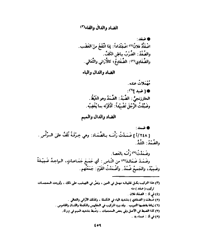 ضفد : اضْفَأَدَّ فلانٌ اضْفِئْدَاداً : إذا انْتَفَخَ من الغَضَبِ . والضَّفْدُ : الضَّرْبُ بباطِنِ الكَفِّ . والضَّفَادِي : الضَّفَادِعُ ؛ كالأَرَاني والثَّعَالي .