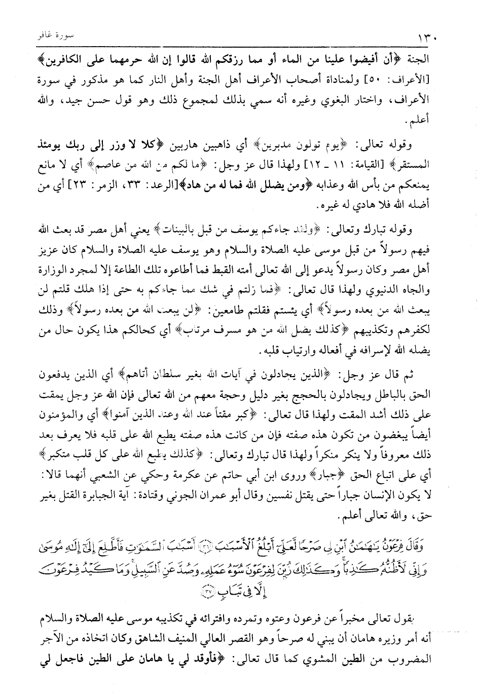 وَقالَ فِرْعَوْنُ يَا هامانُ ابْنِ لِي صَرْحاً لَعَلِّي أَبْلُغُ الْأَسْبابَ (36) أَسْبابَ السَّماواتِ فَأَطَّلِعَ إِلى إِلهِ مُوسى وَإِنِّي لَأَظُنُّهُ كاذِباً وَكَذلِكَ زُيِّنَ لِفِرْعَوْنَ سُوءُ عَمَلِهِ وَصُدَّ عَنِ السَّبِيلِ وَما كَيْدُ فِرْعَوْنَ إِلاَّ فِي تَبابٍ (37)