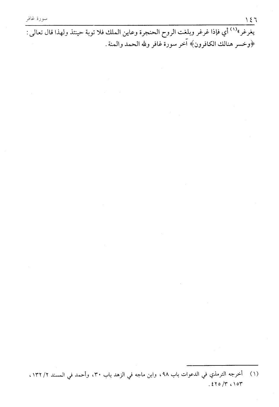 وَخَسِرَ هُنالِكَ الْكافِرُونَ آخر سورة غافر ولله الحمد والمنة.
