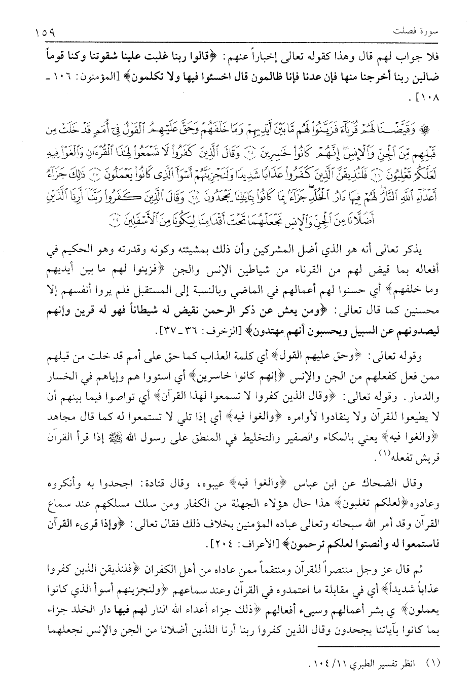 وَقَيَّضْنا لَهُمْ قُرَناءَ فَزَيَّنُوا لَهُمْ مَا بَيْنَ أَيْدِيهِمْ وَما خَلْفَهُمْ وَحَقَّ عَلَيْهِمُ الْقَوْلُ فِي أُمَمٍ قَدْ خَلَتْ مِنْ قَبْلِهِمْ مِنَ الْجِنِّ وَالْإِنْسِ إِنَّهُمْ كانُوا خاسِرِينَ (25) وَقالَ الَّذِينَ كَفَرُوا لَا تَسْمَعُوا لِهذَا الْقُرْآنِ وَالْغَوْا فِيهِ لَعَلَّكُمْ تَغْلِبُونَ (26) فَلَنُذِيقَنَّ الَّذِينَ كَفَرُوا عَذاباً شَدِيداً وَلَنَجْزِيَنَّهُمْ أَسْوَأَ الَّذِي كانُوا يَعْمَلُونَ (27) ذلِكَ جَزاءُ أَعْداءِ اللَّهِ النَّارُ لَهُمْ فِيها دارُ الْخُلْدِ جَزاءً بِما كانُوا بِآياتِنا يَجْحَدُونَ (28) وَقالَ الَّذِينَ كَفَرُوا رَبَّنا أَرِنَا الَّذَيْنِ أَضَلاَّنا مِنَ الْجِنِّ وَالْإِنْسِ نَجْعَلْهُما تَحْتَ أَقْدامِنا لِيَكُونا مِنَ الْأَسْفَلِينَ (29)