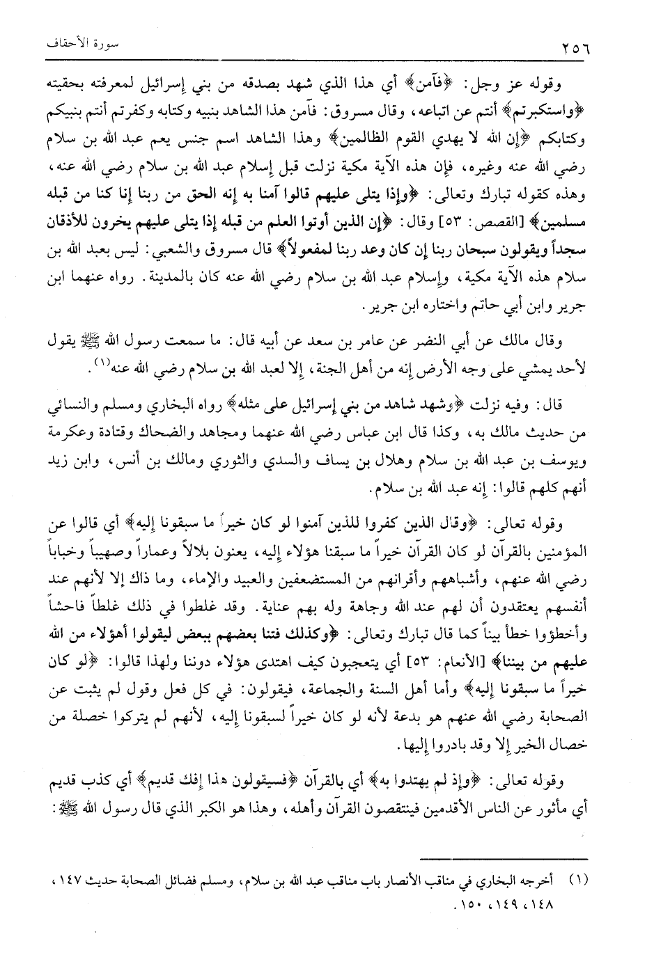 قَالَ: وَفِيهِ نَزَلَتْ وَشَهِدَ شاهِدٌ مِنْ بَنِي إِسْرائِيلَ عَلى مِثْلِهِ رَوَاهُ الْبُخَارِيُّ وَمُسْلِمٌ وَالنَّسَائِيُّ مِنْ حَدِيثِ مَالِكٍ بِهِ، وَكَذَا قَالَ ابْنُ عَبَّاسٍ رَضِيَ اللَّهُ عَنْهُمَا وَمُجَاهِدٌ وَالضَّحَّاكُ وَقَتَادَةُ وَعِكْرِمَةُ وَيُوسُفُ بْنُ عَبْدِ اللَّهِ بْنِ سَلَامٍ وَهِلَالُ بْنُ يَسَافٍ وَالسُّدِّيُّ وَالثَّوْرِيُّ وَمَالِكُ بْنُ أَنَسٍ، وَابْنُ زَيْدٍ أَنَّهُمْ كُلُّهُمْ قَالُوا: إِنَّهُ عَبْدُ اللَّهِ بْنُ سَلَامٍ.