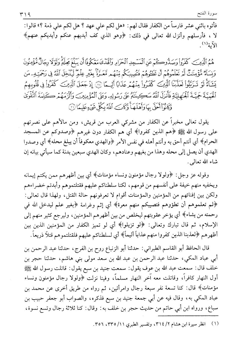 (1) انظر سيرة ابن هشام 2/ 314، وتفسير الطبري 11/ 335، 356.