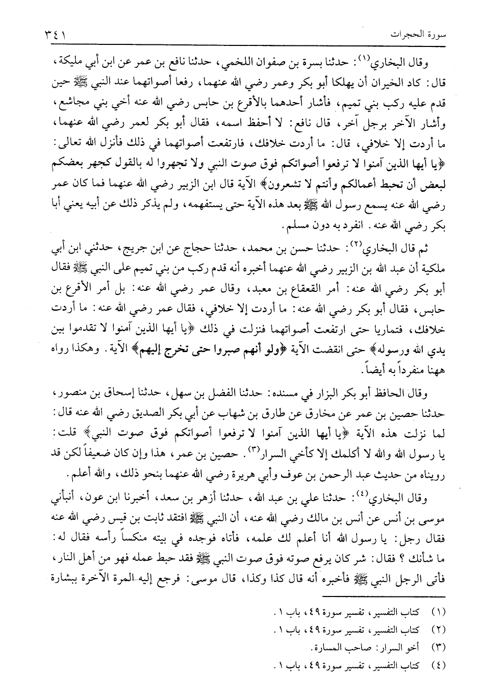 (4) كتاب التفسير، تفسير سورة 49، باب 1.