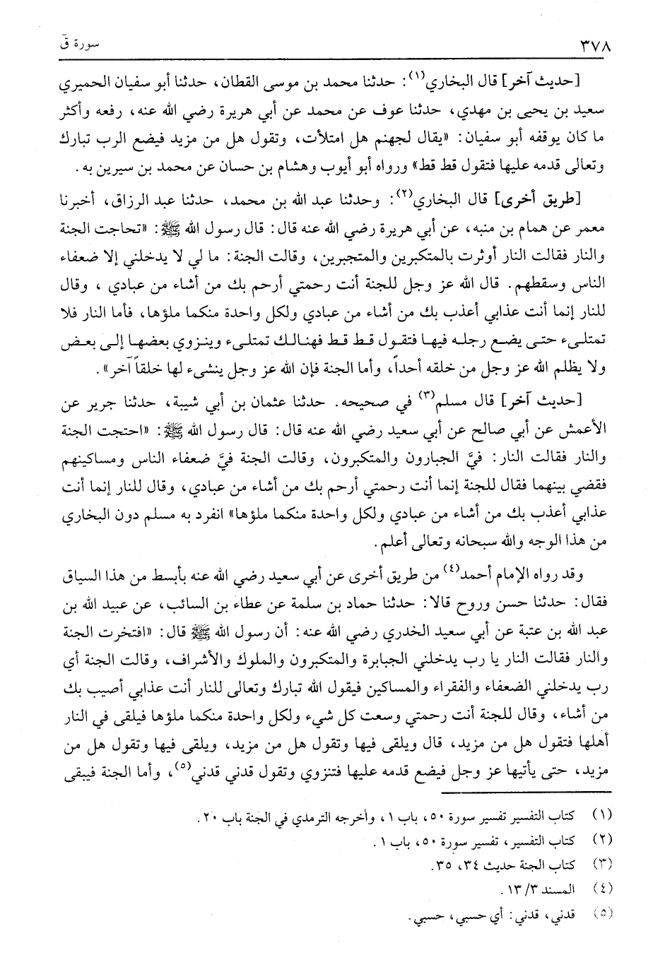 (1) كتاب التفسير تفسير سورة 50، باب 1، وأخرجه الترمذي في الجنة باب 20.