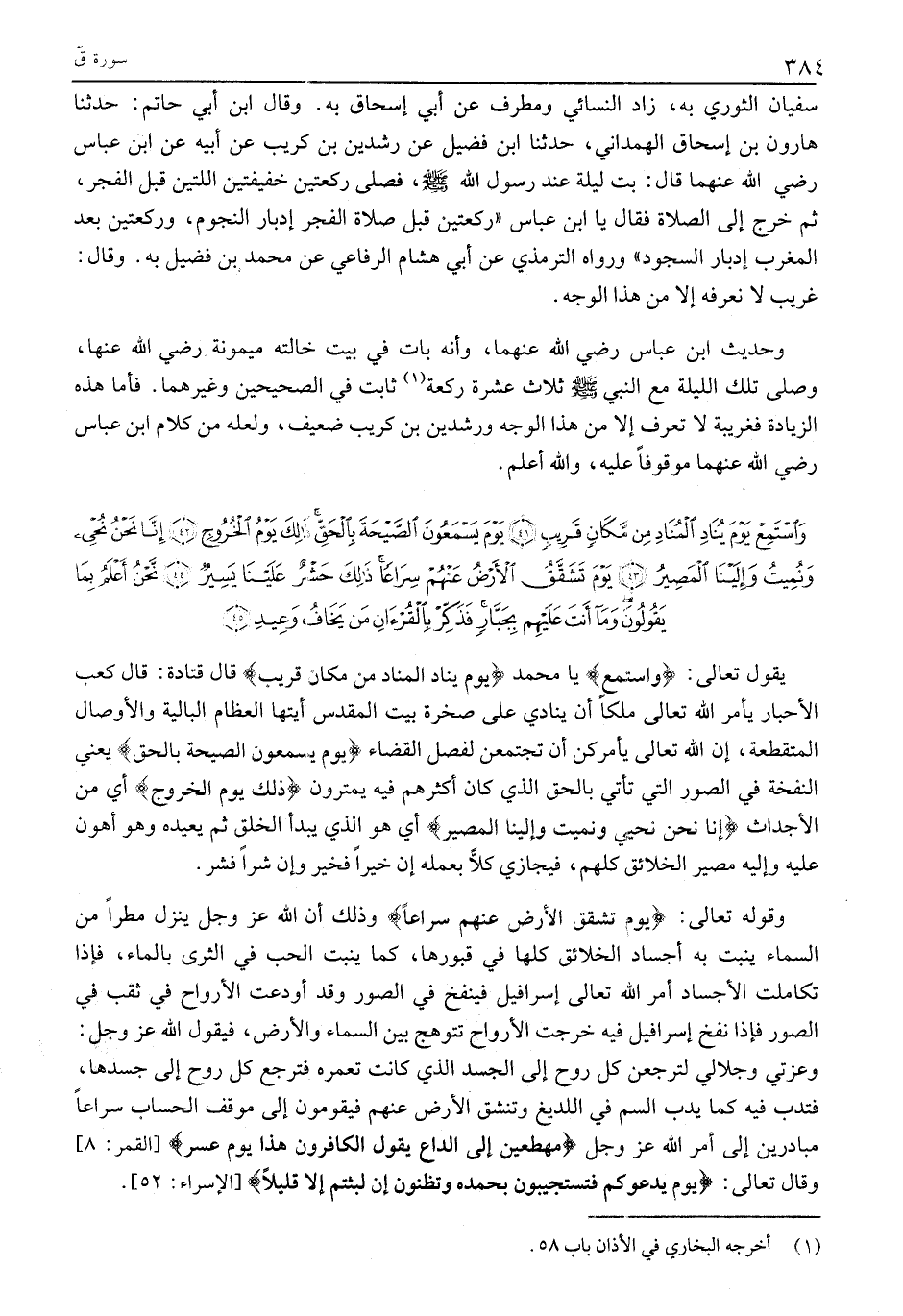 سُفْيَانَ الثَّوْرِيِّ بِهِ، زَادَ النَّسَائِيُّ وَمُطَرِّفٌ عَنْ أَبِي إِسْحَاقَ بِهِ. وَقَالَ ابْنُ أَبِي حَاتِمٍ: حَدَّثَنَا هَارُونُ بْنُ إِسْحَاقَ الْهَمْدَانِيُّ، حَدَّثَنَا ابْنُ فُضَيْلٍ عَنْ رِشْدِينَ بْنِ كُرَيْبٍ عَنْ أَبِيهِ عَنِ ابْنِ عَبَّاسٍ رَضِيَ اللَّهُ عَنْهُمَا قَالَ: بت لَيْلَةٍ عِنْدَ رَسُولِ اللَّهِ صَلَّى اللَّهُ عَلَيْهِ وَسَلَّمَ، فَصَلَّى رَكْعَتَيْنِ خَفِيفَتَيْنِ اللَّتَيْنِ قَبْلَ الْفَجْرِ، ثم خرج إلى الصلاة فقال يا ابن عَبَّاسٍ «رَكْعَتَيْنِ قَبْلَ صَلَاةِ الْفَجْرِ إِدْبَارَ النُّجُومِ، وَرَكْعَتَيْنِ بَعْدَ الْمَغْرِبِ إِدْبَارَ السُّجُودِ» وَرَوَاهُ التِّرْمِذِيُّ عَنْ أَبِي هِشَامٍ الرِّفَاعِيِّ عَنْ مُحَمَّدِ بْنِ فُضَيْلٍ بِهِ. وَقَالَ: