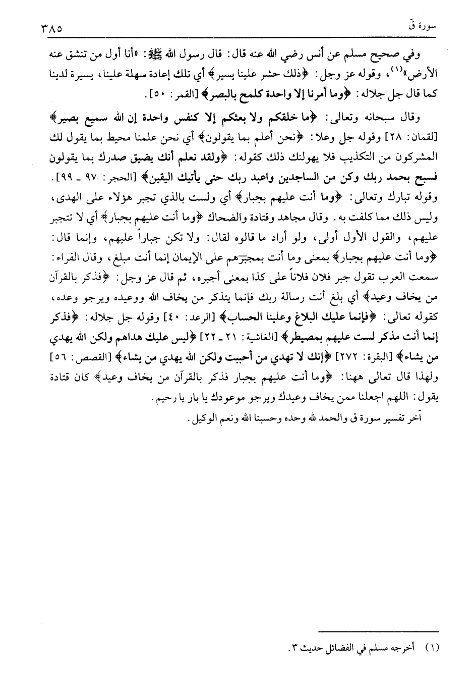 آخَرُ تَفْسِيرِ سُورَةِ ق وَالْحَمْدُ لِلَّهِ وَحْدَهُ وَحَسْبُنَا اللَّهُ وَنِعْمَ الْوَكِيلُ.
