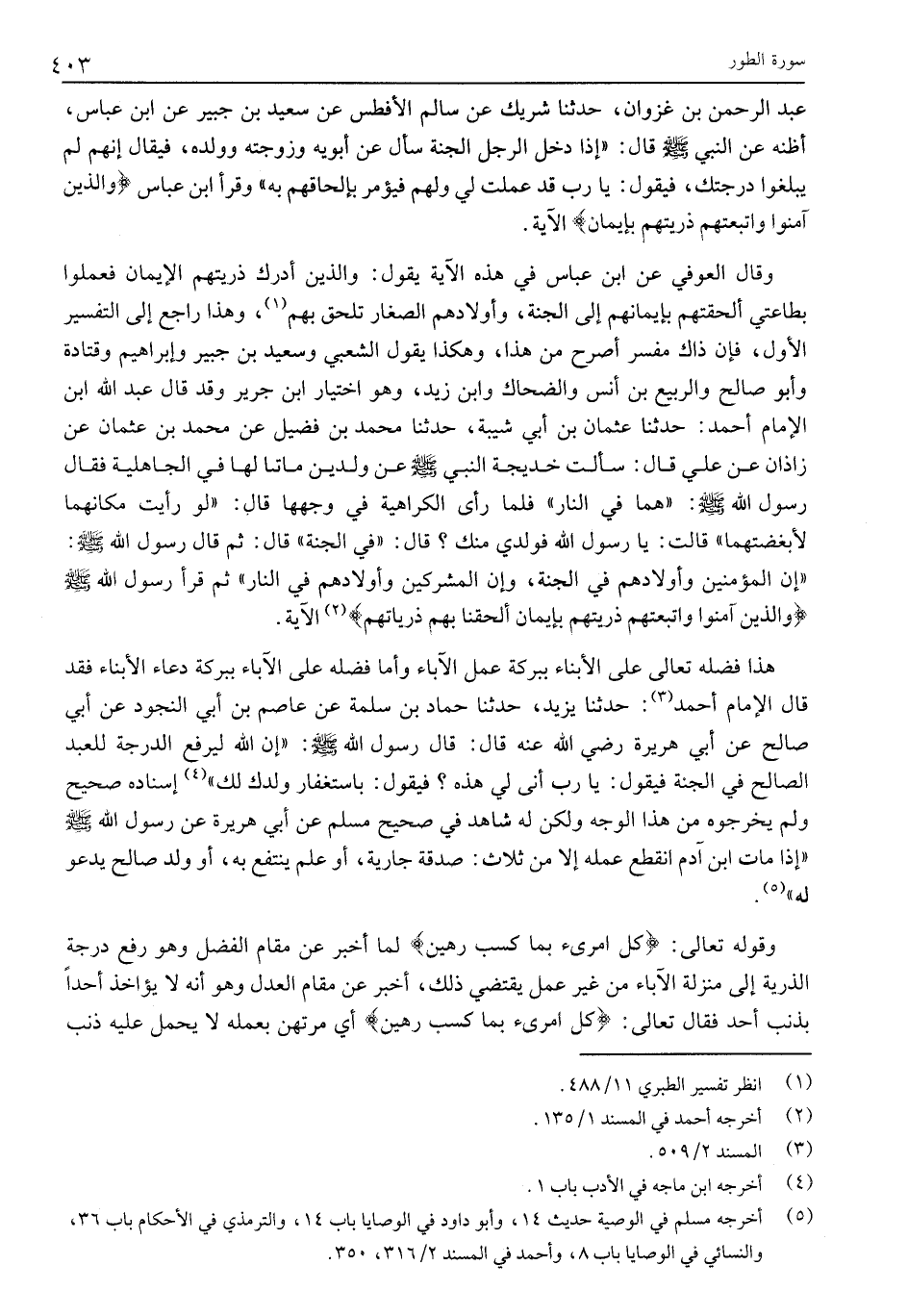 عَبْدِ الرَّحْمَنِ بْنِ غَزْوَانَ، حَدَّثَنَا شَرِيكٌ عَنْ سَالِمٍ الْأَفْطَسِ عَنْ سَعِيدِ بْنِ جُبَيْرٍ عَنِ ابْنِ عَبَّاسٍ، أَظُنُّهُ عَنِ النَّبِيِّ صَلَّى اللَّهُ عَلَيْهِ وَسَلَّمَ قَالَ: «إِذَا دَخَلَ الرَّجُلُ الْجَنَّةَ سَأَلَ عَنْ أَبَوَيْهِ وَزَوْجَتِهِ وَوَلَدِهِ، فَيُقَالُ إِنَّهُمْ لَمْ يَبْلُغُوا دَرَجَتَكَ، فَيَقُولُ: يَا رَبِّ قَدْ عَمِلْتُ لِي وَلَهُمْ فَيُؤْمَرُ بِإِلْحَاقِهِمْ بِهِ» وَقَرَأَ ابْنُ عَبَّاسٍ وَالَّذِينَ آمَنُوا وَاتَّبَعَتْهُمْ ذُرِّيَّتُهُمْ بِإِيمانٍ الْآيَةَ.