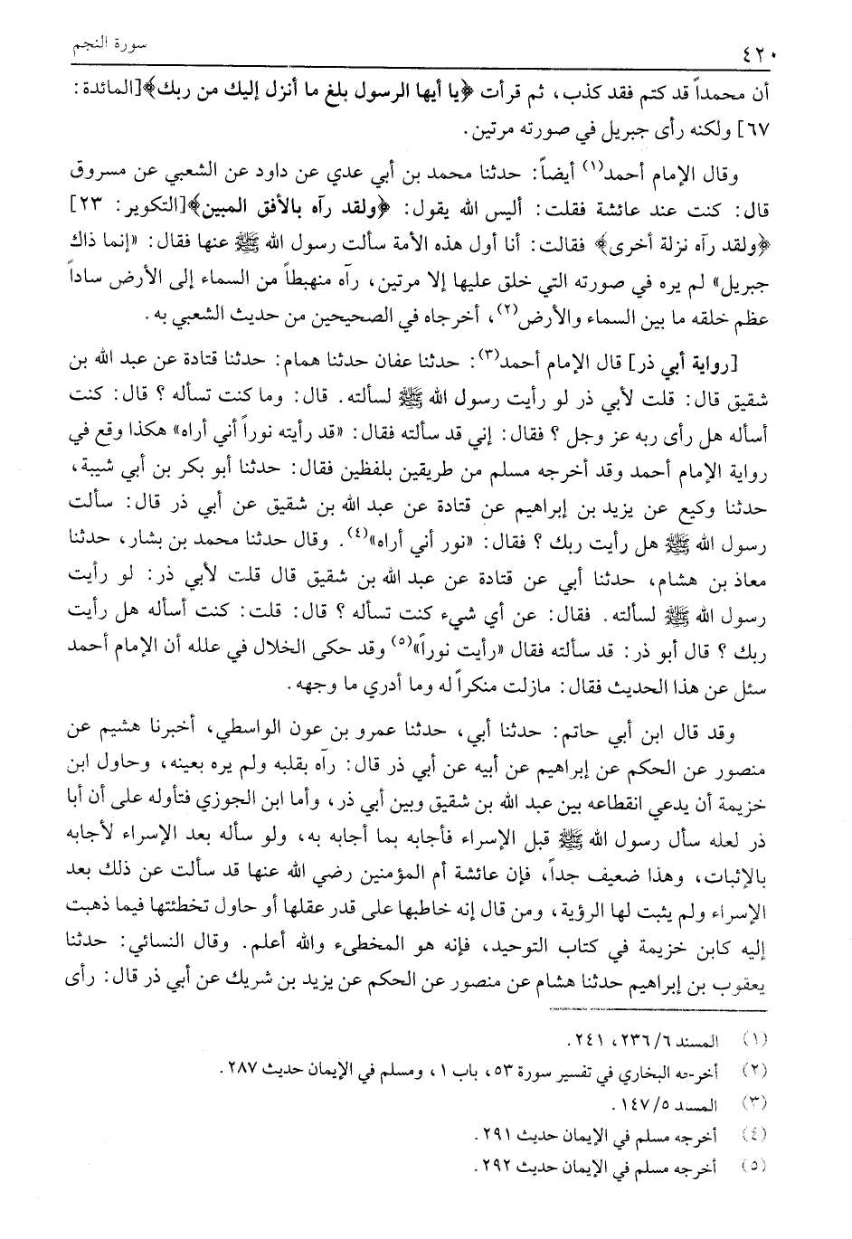 (2) أخرجه البخاري في تفسير سورة 53، باب 1، ومسلم في الإيمان حديث 287. [.....]