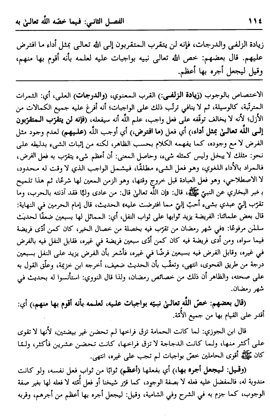 زيادة الزلفى والدرجات، فإنه لن يتقرب المتقربون إلى الله تعالى بمثل أداء ما افترض عليهم. قال بعضهم: خص الله تعالى نبيه بواجبات عليه لعلمه بأنه أقوم بها منهم، وقيل ليجعل أجره بها أعظم.
