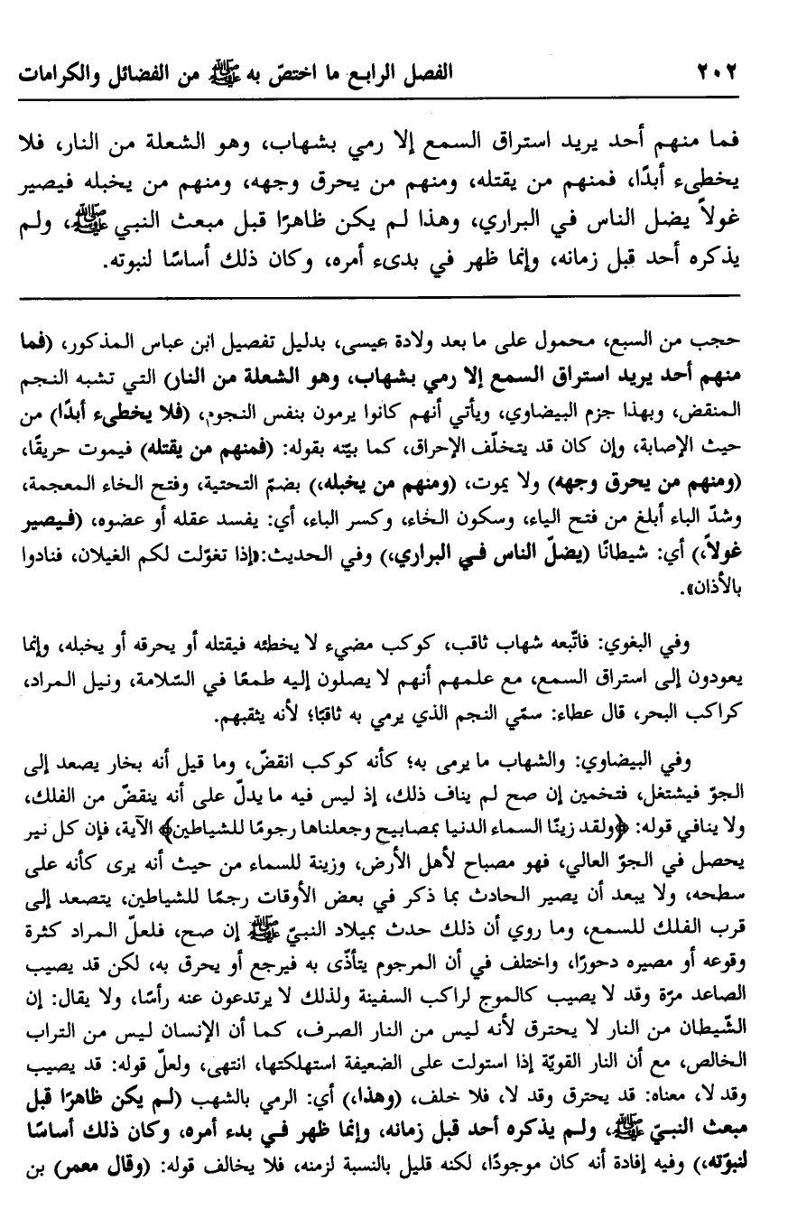 فما منهم أحد يريد استراق السمع إلا رمي بشهاب، وهو الشعلة من النار، فلا يخطئ أبدًا، فمنهم من يقتله، ومنهم من يحرق وجهه، ومنهم من يخبله فيصير غولا يضل الناس في البراري، وهذا لم يكن ظاهرًا قبل مبعث النبي صلى الله عليه وسلم، ولم يذكره أحد قبل زمانه، وإنما ظهر في بدئ أمره، وكان ذلك أساسًا لنبوته.