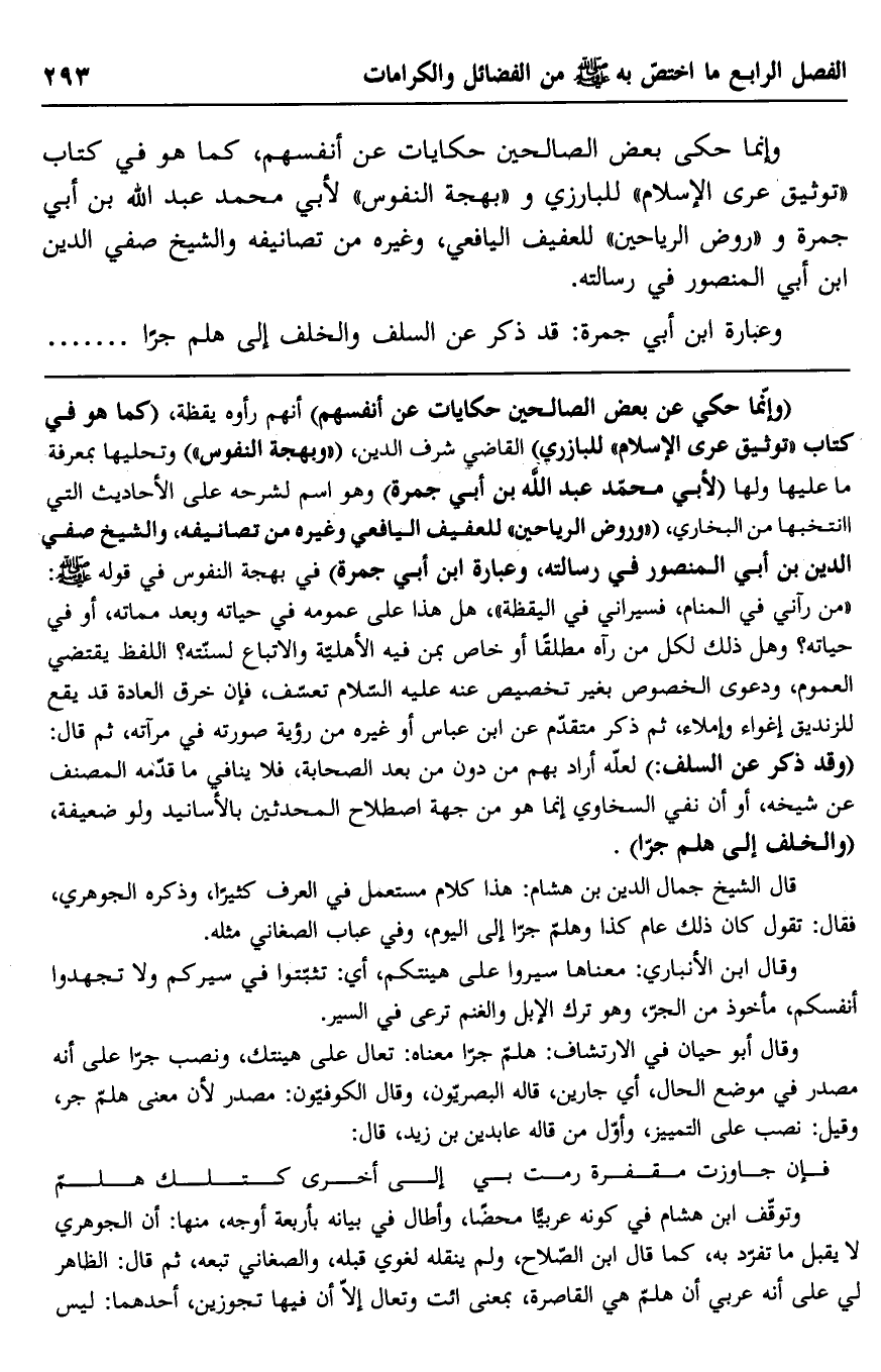 وعبارة ابن أبي جمرة: قد ذكر عن السلف والخلف إلى هلم جرا.