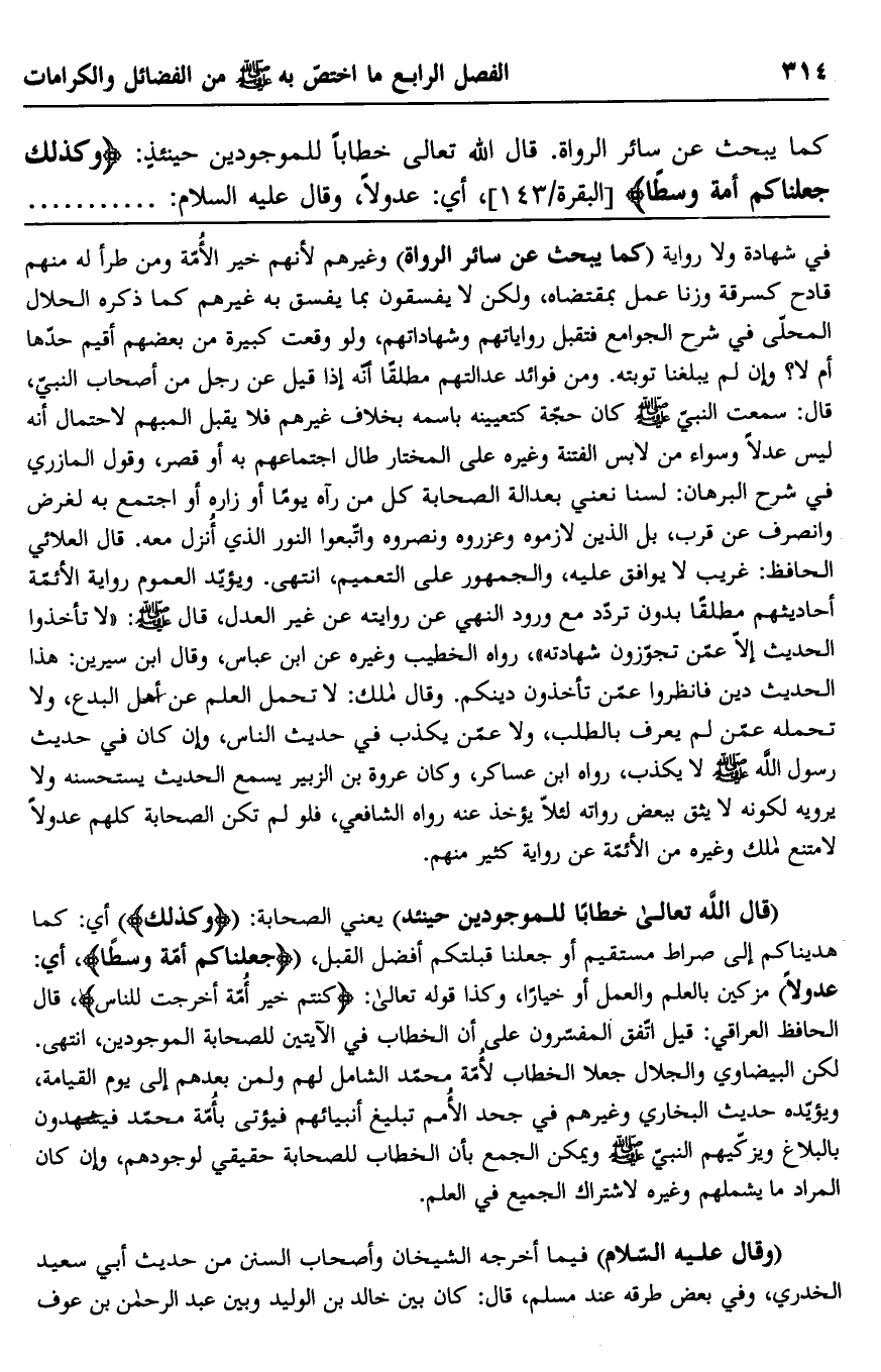 كما يبحث عن سائر الرواة. قال الله تعالى خطابًا للموجودين حينئذ: {وَكَذَلِكَ جَعَلْنَاكُمْ أُمَّةً وَسَطًا} [البقرة: 143] ، أي: عدولا، وقال عليه السلام: