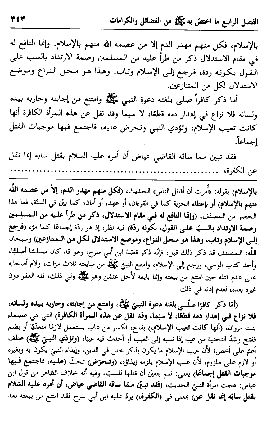 فقد تبين مما ساقه القاضي عياض أن أمره عليه السلام بقتل سابه إنما نقل عن الكفرة.