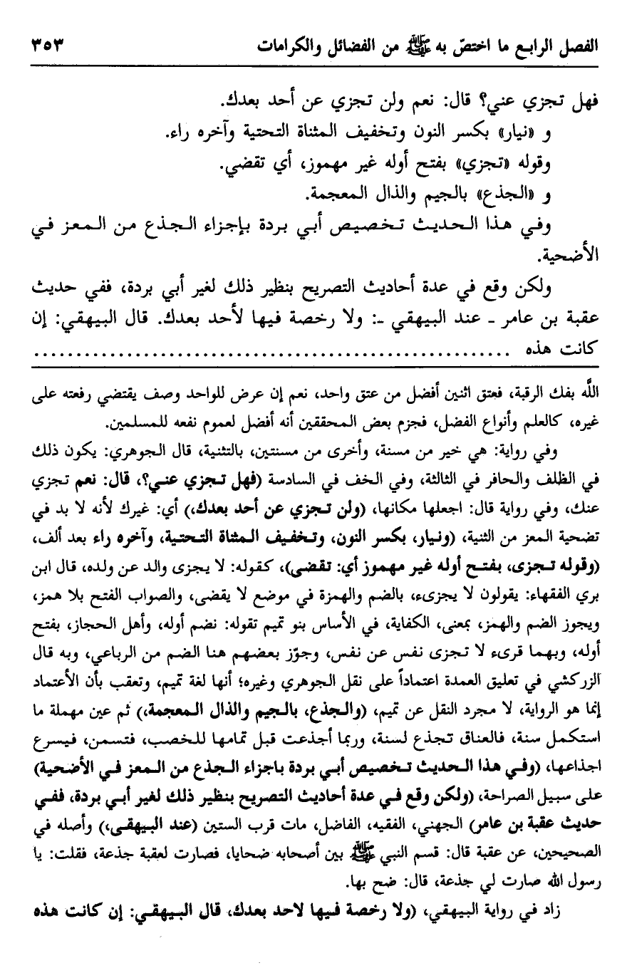 ولكن وقع في عدة أحاديث التصريح بنظير ذلك لغير أبي بردة، ففي حديث عقبة بن عامر -عند البيهقي: "ولا رخصة فيها لأحد بعدك". قال البيهقي: إن كانت هذه.