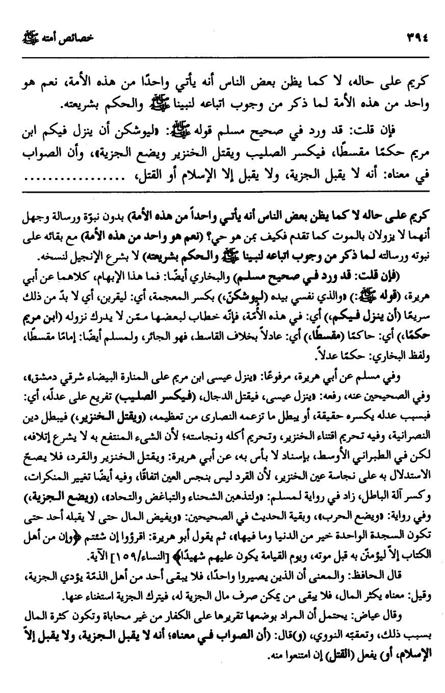 فإن قلت: قد ورد في صحيح مسلم قوله صلى الله عليه وسلم: "ليوشكن أن ينزل فيكم ابن مريم حكمًا مقسطًا، فيكسر الصليب ويقتل الخنزير ويضع الجزية"، وأن الصواب في معناه: أنه لا يقبل الجزية، ولا يقبل إلا الإسلام أو القتل.