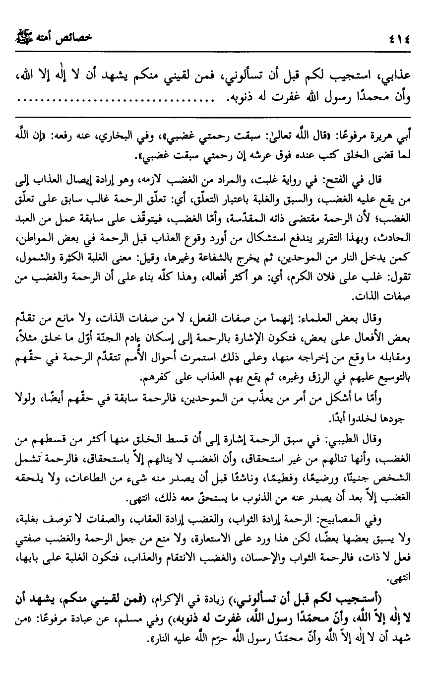 "أستجيب لكم قبل أن تسألوني" زيادة في الإكرام، "فمن لقيني منكم، يشهد أن لا إله إلا الله، وأن محمدًا رسول الله، غفرت له ذنوبه" وفي مسلم، عن عبادة مرفوعًا: "من شهد أن لا إله إلا الله وأن محمدًا رسول الله حرم الله عليه النار".
