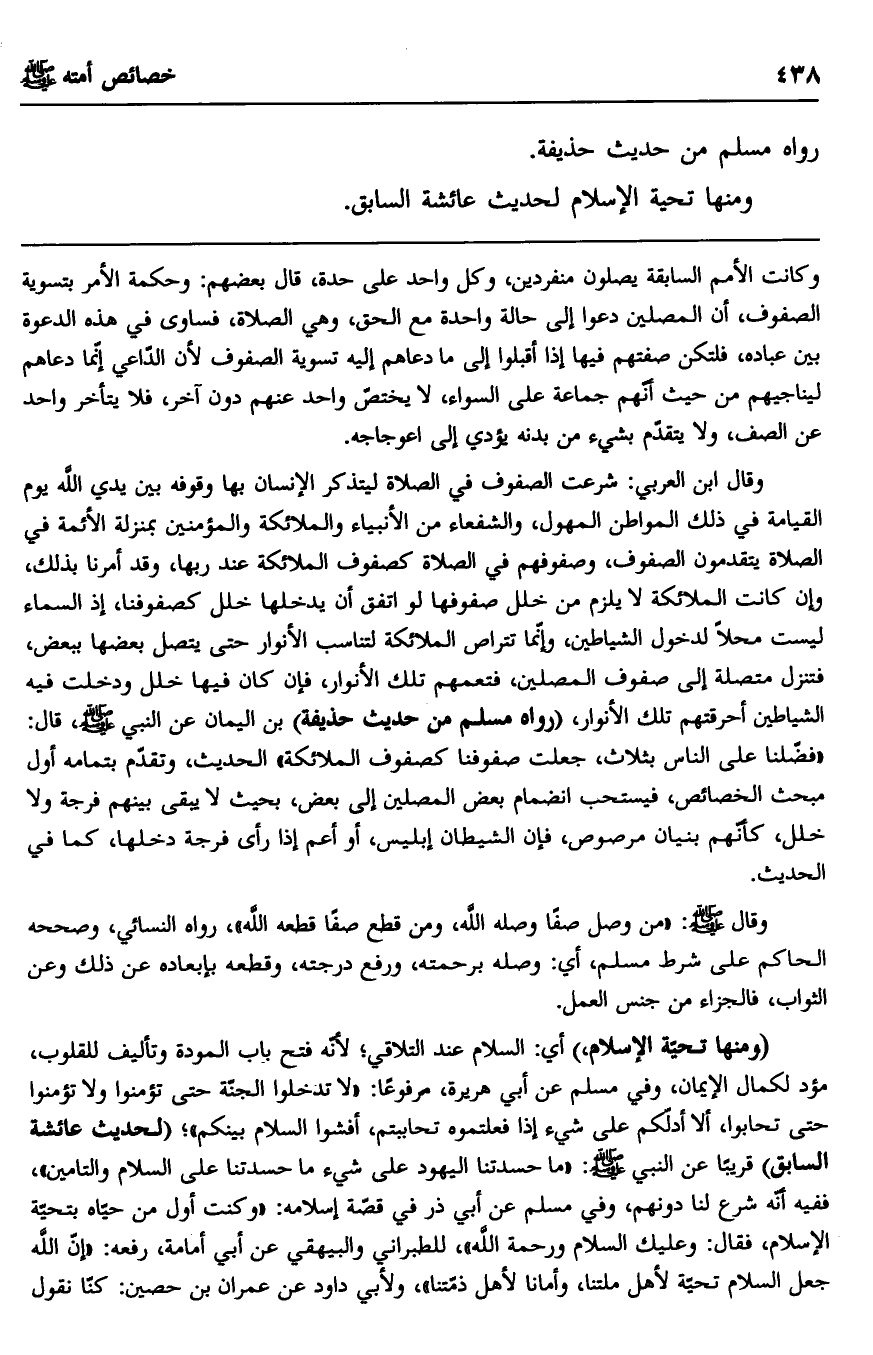 ومنها تحية الإسلام لحديث عائشة السابق.