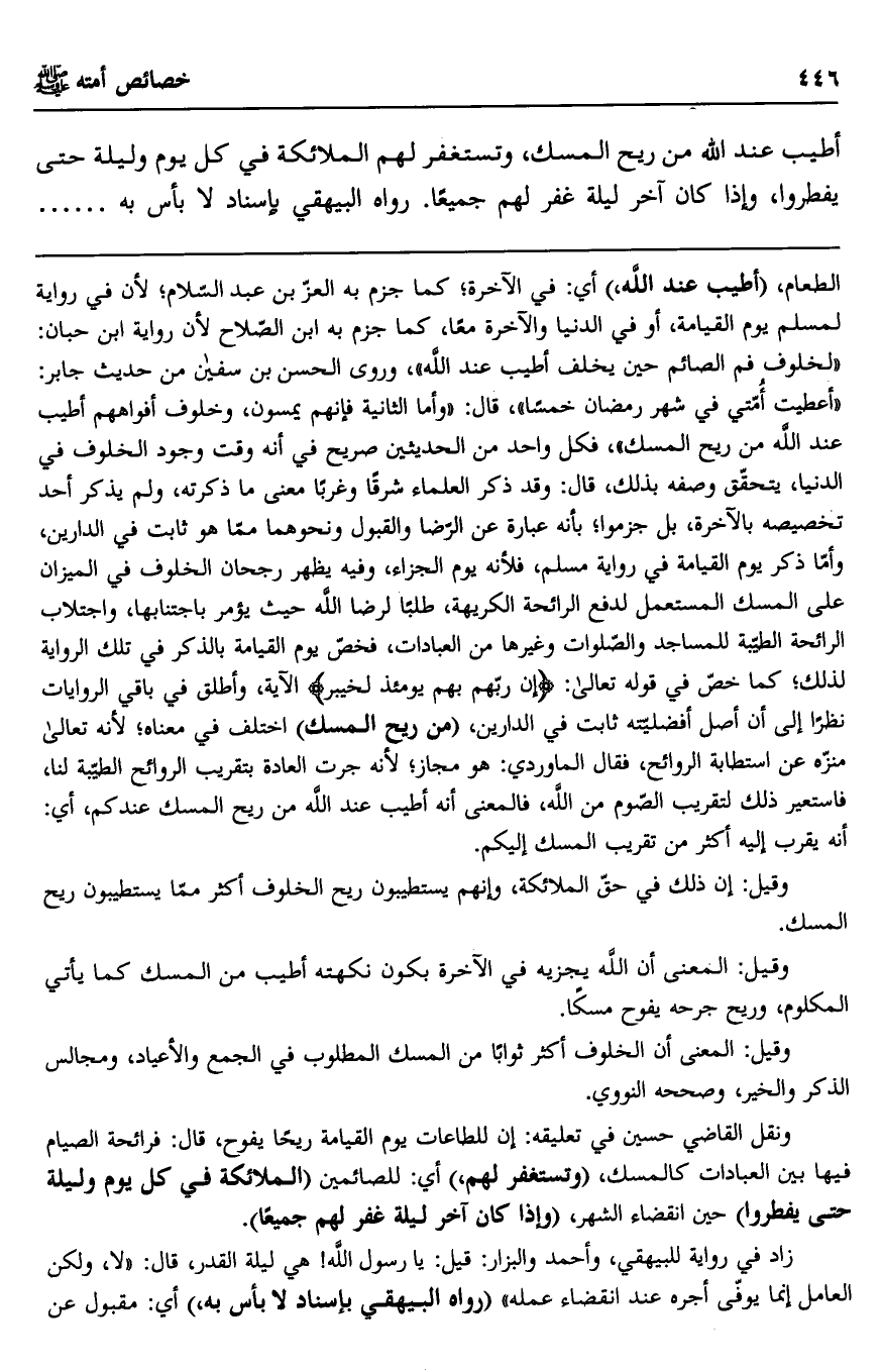 أطيب عند الله من ريح المسك، وتستغفر لهم الملائكة في كل يوم وليلة حتى يفطروا، وإذا كان آخر ليلة غفر لهم جميعًا. رواه البيهقي بإسناد لا بأس به.