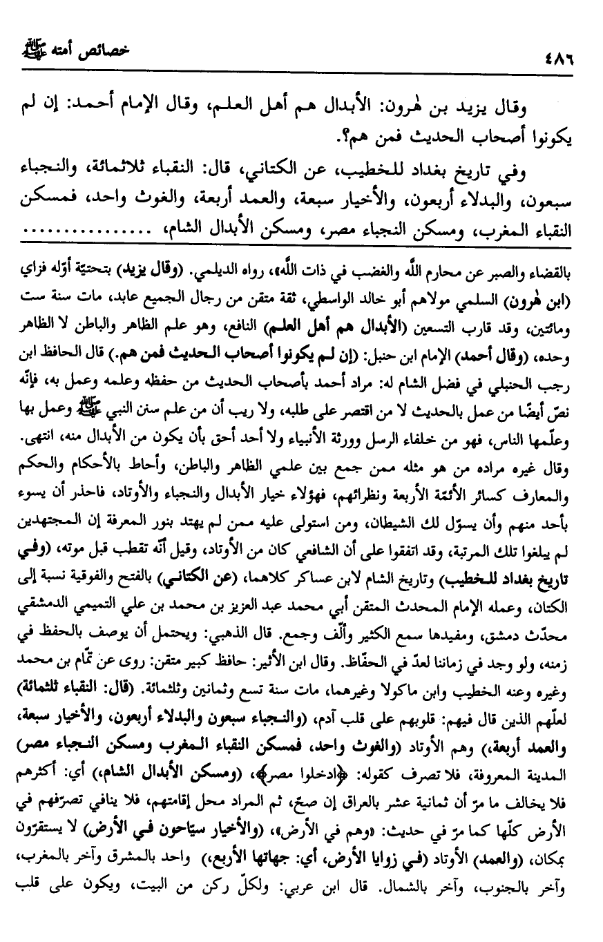 وقال يزيد بن هارون: الأبدال هم أهل العلم، وقال الإمام أحمد، إن لم يكونوا أصحاب الحديث فمن هم؟