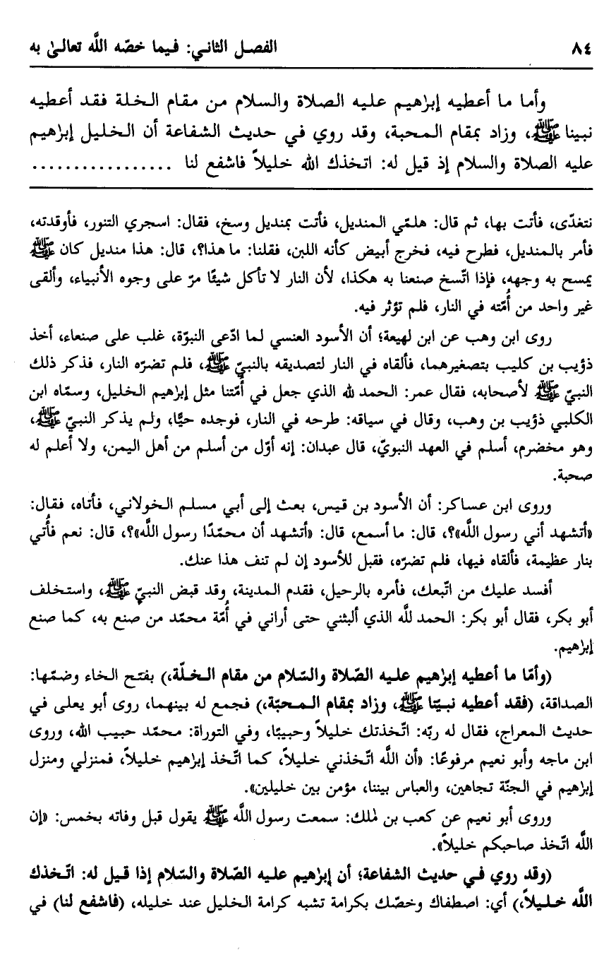وأما ما أعطيه إبراهيم عليه الصلاة والسلام من مقام الخلة فقد أعطيه نبينا صلى الله عليه وسلم، وزاد بمقام المحبة، وقد روي في حديث الشفاعة أن الخليل إبراهيم عليه الصلاة والسلام إذ قيل له: اتخذك الله خليلا فاشفع لنا