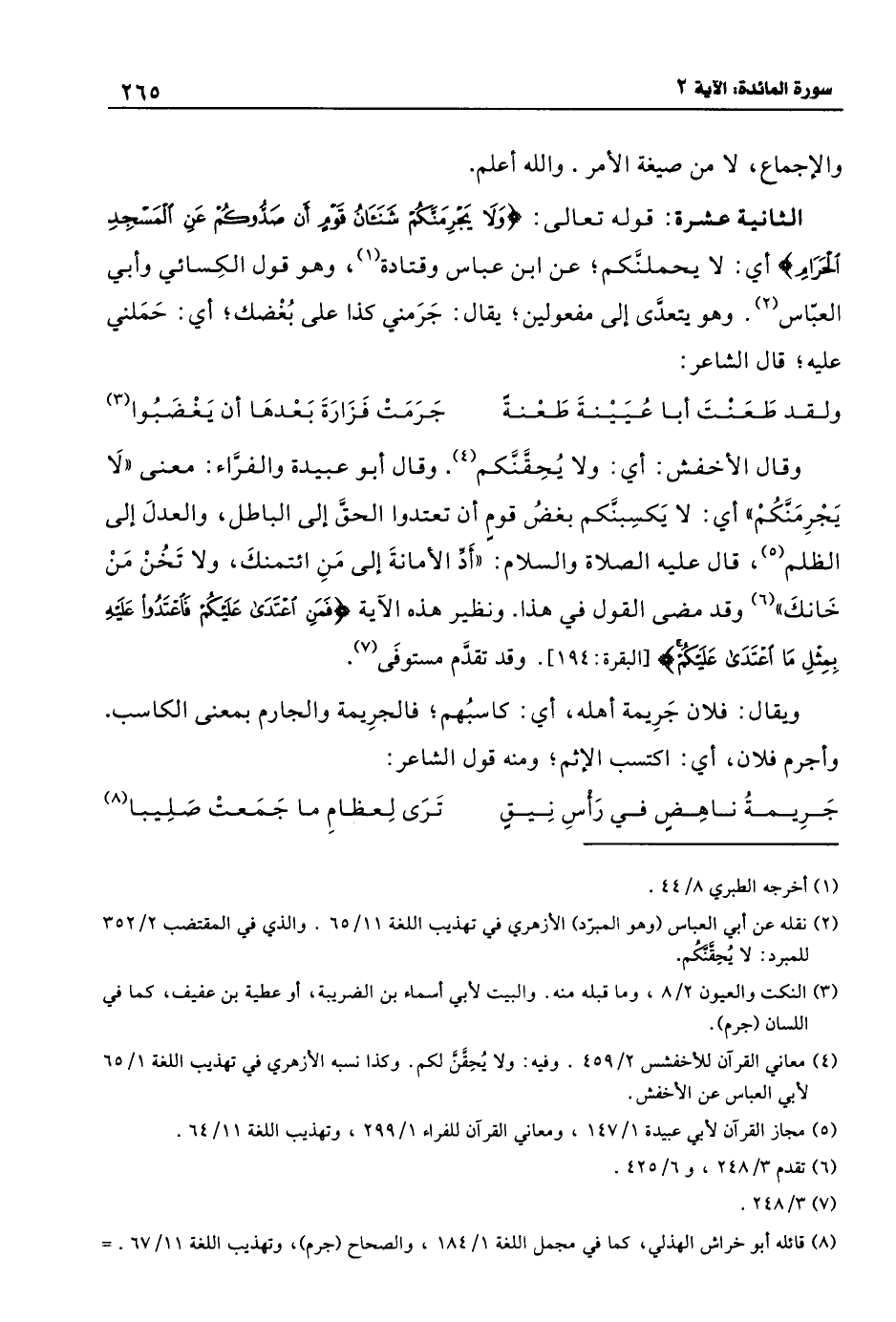 (4). مكناتها بكسر الكاف وقد تفتح: أي بيضها. وهى في الأصل بيض الضباب. وقيل على أمكنتها ومساكنها. قال شمر: والصحيح في قوله على مكناتها أنها جمع المكنة والملكة: التمكن. وقال الزمخشري: ويروى: مكناتها جمع مكن ومكن جمع مكان.