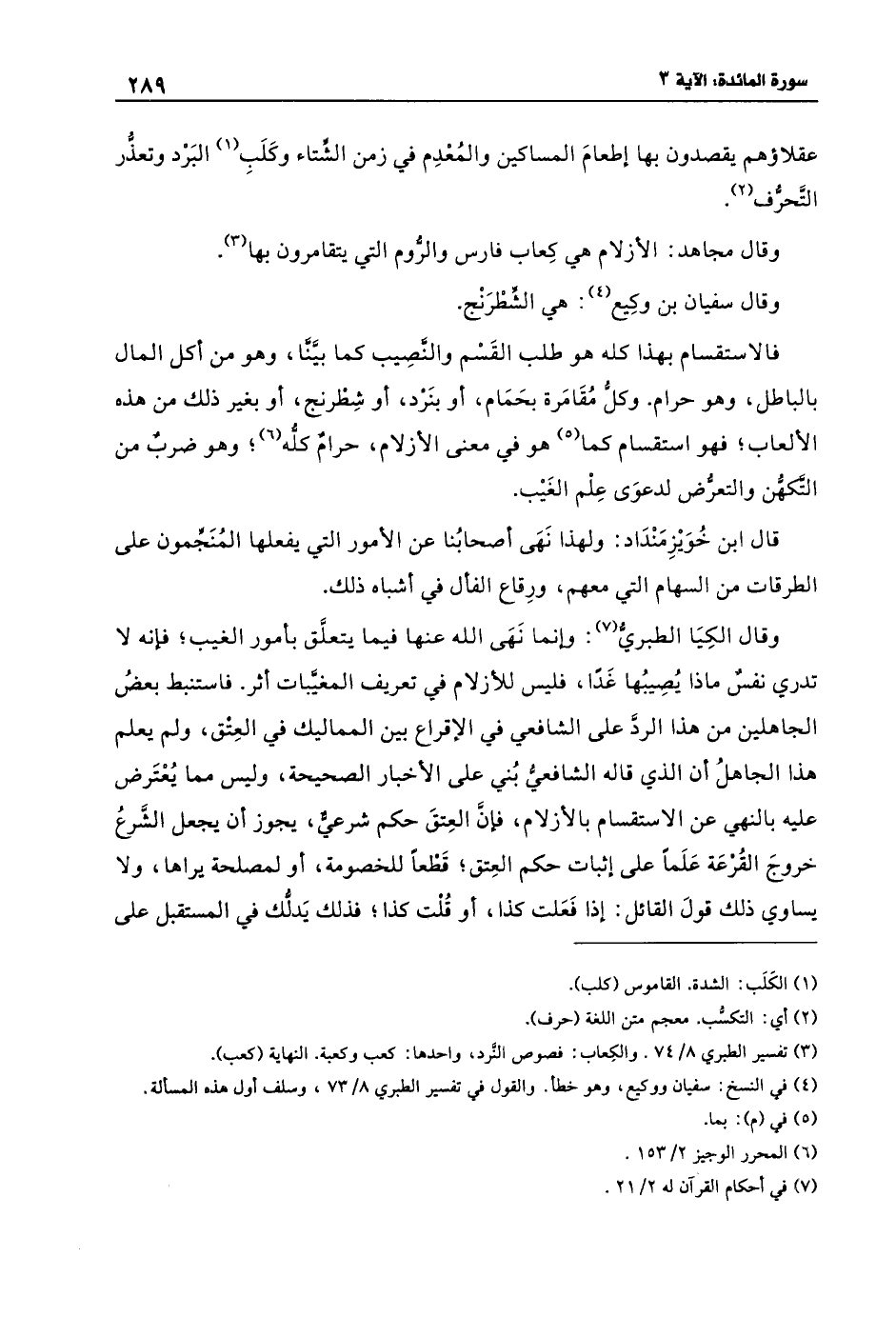 إِنْ حَضَرُوا هَذِهِ الْأَمْكِنَةَ مَعَ عِلْمِهِمْ أَنَّ الطَّرَبَ يَغْلِبُ عَلَيْهِمْ فَيُزِيلُ عُقُولَهُمْ أَثِمُوا بِمَا أَدْخَلُوهُ عَلَى أَنْفُسِهِمْ مِنَ التَّخْرِيقِ وَغَيْرِهِ مِمَّا أَفْسَدُوا، وَلَا يَسْقُطُ عَنْهُمْ خِطَابُ الشَّرْعِ، لِأَنَّهُمْ مُخَاطَبُونَ قَبْلَ الْحُضُورِ بِتَجَنُّبِ هَذَا الْمَوْضِعِ الَّذِي يُفْضِي إِلَى ذَلِكَ. كَمَا هُمْ مَنْهِيُّونَ عَنْ شُرْبِ الْمُسْكِرِ، كَذَلِكَ هَذَا الطَّرَبُ الَّذِي يُسَمِّيهِ أَهْلُ التَّصَوُّفِ وَجْدًا إِنْ صَدَقُوا أَنَّ فِيهِ سُكْرَ طَبْعٍ، وَإِنْ كَذَبُوا أَفْسَدُوا مَعَ الصَّحْوِ، فَلَا سَلَامَةَ فِيهِ مَعَ الْحَالَيْنِ، وَتَجَنُّبُ مَوَاضِعِ الرِّيَبِ وَاجِبٌ. قَوْلُهُ تَعَالَى: (وَأَخَذَ بِرَأْسِ أَخِيهِ يَجُرُّهُ إِلَيْهِ) 150 أَيْ بِلِحْيَتِهِ وَذُؤَابَتِهِ. وَكَانَ هَارُونُ أَكْبَرَ مِنْ مُوسَى- صَلَوَاتُ اللَّهِ وَسَلَامُهُ عَلَيْهِمَا- بِثَلَاثَ سِنِينَ، وَأَحَبَّ إِلَى بَنِي إِسْرَائِيلَ مِنْ موسى، لأنه كان لين الغضب. للعلماء فِي أَخْذِ مُوسَى بِرَأْسِ أَخِيهِ أَرْبَعَ تَأْوِيلَاتٍ الْأَوَّلُ- أَنَّ ذَلِكَ كَانَ مُتَعَارَفًا عِنْدَهُمْ، كَمَا كَانَتِ الْعَرَبُ تَفْعَلُهُ مِنْ قَبْضِ الرَّجُلِ عَلَى لِحْيَةِ أَخِيهِ وَصَاحِبِهِ إِكْرَامًا وَتَعْظِيمًا، فَلَمْ يَكُنْ ذَلِكَ عَلَى طَرِيقِ الْإِذْلَالِ. الثَّانِي- أَنَّ ذَلِكَ إِنَّمَا كَانَ لِيُسِرَّ إِلَيْهِ نُزُولَ الْأَلْوَاحِ عَلَيْهِ، لِأَنَّهَا نَزَلَتْ عَلَيْهِ فِي هَذِهِ الْمُنَاجَاةِ وَأَرَادَ أَنْ يُخْفِيَهَا عَنْ بَنِي إِسْرَائِيلَ قَبْلَ التَّوْرَاةِ. فَقَالَ لَهُ هَارُونُ: لَا تَأْخُذْ بِلِحْيَتِي وَلَا بِرَأْسِي، لِئَلَّا يُشْتَبَهَ سِرَارُهُ عَلَى بَنِي إِسْرَائِيلَ بِإِذْلَالِهِ. الثَّالِثُ- إِنَّمَا فَعَلَ ذَلِكَ بِهِ لِأَنَّهُ وَقَعَ فِي نَفْسِهِ أَنَّ هَارُونَ مَائِلٌ مَعَ بَنِي إِسْرَائِيلَ فِيمَا فَعَلُوهُ مِنْ أَمْرِ الْعِجْلِ. وَمِثْلُ هَذَا لَا يَجُوزُ عَلَى الْأَنْبِيَاءِ. الرَّابِعُ- ضَمَّ إِلَيْهِ أَخَاهُ لِيَعْلَمَ مَا لَدَيْهِ، فَكَرِهَ ذَلِكَ هَارُونُ لِئَلَّا يَظُنَّ بَنُو إِسْرَائِيلَ أَنَّهُ أَهَانَهُ، فَبَيَّنَ لَهُ أَخُوهُ أَنَّهُمُ اسْتَضْعَفُوهُ، يَعْنِي عَبَدَةَ الْعِجْلِ، وَكَادُوا يَقْتُلُونَهُ أَيْ قَارَبُوا. فَلَمَّا سَمِعَ عُذْرَهُ قَالَ: رَبِّ اغْفِرْ لِي وَلِأَخِي، أَيِ اغْفِرْ لِي مَا كَانَ مِنَ الْغَضَبِ الَّذِي أَلْقَيْتُ مِنْ أَجْلِهِ الْأَلْوَاحَ، وَلِأَخِي لِأَنَّهُ ظَنَّهُ مُقَصِّرًا فِي الْإِنْكَارِ عَلَيْهِمْ وَإِنْ لَمْ يَقَعْ مِنْهُ تَقْصِيرٌ، أَيِ اغْفِرْ لِأَخِي إِنْ قَصَّرَ. قَالَ الْحَسَنُ: عَبَدَ كُلُّهُمُ الْعِجْلَ غَيْرَ هَارُونَ، إِذْ لَوْ كَانَ ثَمَّ مُؤْمِنٌ غَيْرُ مُوسَى وَهَارُونَ لَمَا اقْتَصَرَ عَلَى قَوْلِهِ: رَبِّ اغْفِرْ لِي وَلِأَخِي، وَلَدَعَا لِذَلِكَ الْمُؤْمِنِ أَيْضًا. وَقِيلَ: اسْتَغْفَرَ لِنَفْسِهِ مِنْ فِعْلِهِ بِأَخِيهِ،
