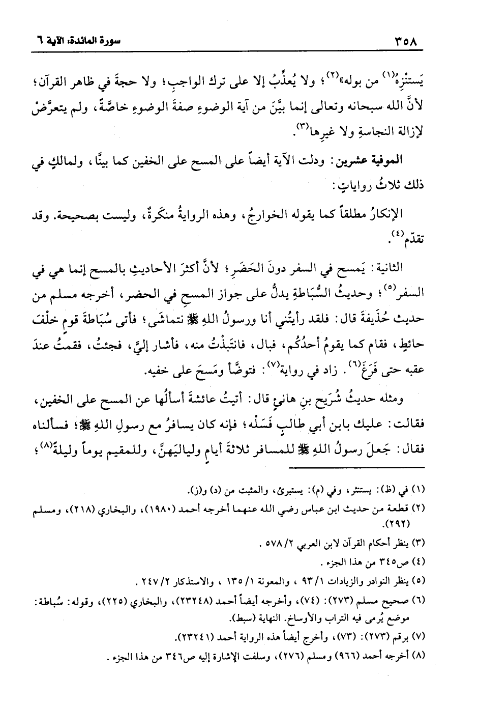 أَبِي كُرَيْبٍ" يَا وَيْلِي"، وَبِقَوْلِهِ عَلَيْهِ السَّلَامُ إِخْبَارًا عَنْ إِبْلِيسَ لَعَنَهُ اللَّهُ:" أُمِرَ ابْنُ آدَمَ بِالسُّجُودِ فَسَجَدَ فَلَهُ الْجَنَّةُ وَأُمِرْتُ بِالسُّجُودِ فَأَبَيْتُ فَلِيَ النَّارُ" أَخْرَجَهُ مُسْلِمٌ. وَلِأَنَّ النَّبِيَّ صَلَّى اللَّهُ عَلَيْهِ وَسَلَّمَ كَانَ يُحَافِظُ عَلَيْهِ. وَعَوَّلَ عُلَمَاؤُنَا عَلَى حَدِيثِ عُمَرَ الثَّابِتِ- خَرَّجَهُ الْبُخَارِيُّ- أَنَّهُ قَرَأَ آيَةَ سَجْدَةٍ عَلَى الْمِنْبَرِ (فَنَزَلَ «1») فَسَجَدَ وَسَجَدَ النَّاسُ مَعَهُ، ثُمَّ قَرَأَهَا فِي الْجُمُعَةِ الْأُخْرَى فَتَهَيَّأَ النَّاسُ لِلسُّجُودِ، فَقَالَ:" أَيُّهَا النَّاسُ عَلَى رِسْلِكُمْ! إِنَّ اللَّهَ لَمْ يَكْتُبْهَا عَلَيْنَا إِلَّا أَنْ نَشَاءَ". وَذَلِكَ بِمَحْضَرِ الصَّحَابَةِ (رَضِيَ اللَّهُ عَنْهُمْ أَجْمَعِينَ «2») مِنْ الْأَنْصَارِ وَالْمُهَاجِرِينَ. فَلَمْ يُنْكِرْ عَلَيْهِ أَحَدٌ فَثَبَتَ الْإِجْمَاعُ به في ذلك. وأما قول:" أُمِرَ ابْنُ آدَمَ بِالسُّجُودِ" فَإِخْبَارٌ عَنِ السُّجُودِ الْوَاجِبِ. وَمُوَاظَبَةُ النَّبِيِّ صَلَّى اللَّهُ عَلَيْهِ وَسَلَّمَ تَدُلُّ عَلَى الِاسْتِحْبَابِ! وَاللَّهُ أَعْلَمُ. الرَّابِعَةُ- وَلَا خِلَافَ فِي أَنَّ سُجُودَ الْقُرْآنِ يَحْتَاجُ إِلَى مَا تَحْتَاجُ إِلَيْهِ الصَّلَاةُ مِنْ طَهَارَةِ حَدَثٍ وَنَجَسٍ وَنِيَّةٍ وَاسْتِقْبَالِ قِبْلَةٍ وَوَقْتٍ. إِلَّا مَا ذَكَرَ الْبُخَارِيُّ عَنِ ابْنِ عُمَرَ أَنَّهُ كَانَ يَسْجُدُ عَلَى غَيْرِ طَهَارَةٍ. وَذَكَرَهُ ابْنُ الْمُنْذِرِ عَنِ الشَّعْبِيِّ. وَعَلَى قَوْلِ الْجُمْهُورِ هَلْ يَحْتَاجُ إِلَى تَحْرِيمٍ وَرَفْعِ يَدَيْنِ عِنْدَهُ وَتَكْبِيرٍ وَتَسْلِيمٍ؟ اخْتَلَفُوا فِي ذَلِكَ، فَذَهَبَ الشَّافِعِيُّ وَأَحْمَدُ وَإِسْحَاقُ إِلَى أَنَّهُ يُكَبِّرُ وَيَرْفَعُ لِلتَّكْبِيرِ لَهَا. وَقَدْ رُوِيَ فِي الْأَثَرِ عَنِ ابْنِ عُمَرَ أَنَّ النَّبِيَّ صَلَّى اللَّهُ عَلَيْهِ وَسَلَّمَ كَانَ إِذَا سَجَدَ كَبَّرَ، وَكَذَلِكَ إِذَا رَفَعَ كَبَّرَ. وَمَشْهُورُ مَذْهَبِ مَالِكٍ أَنَّهُ يُكَبِّرُ لَهَا فِي الْخَفْضِ وَالرَّفْعِ فِي الصَّلَاةِ. وَاخْتُلِفَ عَنْهُ فِي التَّكْبِيرِ لَهَا فِي غَيْرِ الصَّلَاةِ، وَبِالتَّكْبِيرِ لِذَلِكَ قَالَ عَامَّةُ الْفُقَهَاءِ، وَلَا سَلَامَ لَهَا عِنْدَ الْجُمْهُورِ. وَذَهَبَ جَمَاعَةٌ مِنَ السَّلَفِ وَإِسْحَاقُ إِلَى أَنَّهُ يُسَلِّمُ مِنْهَا. وَعَلَى هَذَا الْمَذْهَبِ يَتَحَقَّقُ أَنَّ التَّكْبِيرَ فِي أَوَّلِهَا لِلْإِحْرَامِ. وَعَلَى قَوْلِ مَنْ لَا يُسَلِّمُ يَكُونُ لِلسُّجُودِ فَحَسْبُ. وَالْأَوَّلُ أَوْلَى، لِقَوْلِهِ عَلَيْهِ السَّلَامُ:" مِفْتَاحُ الصَّلَاةِ الطَّهُورُ وَتَحْرِيمُهَا التَّكْبِيرُ وَتَحْلِيلُهَا التَّسْلِيمُ" وَهَذِهِ عِبَادَةٌ لَهَا تَكْبِيرٌ، فَكَانَ لَهَا تَحْلِيلٌ كَصَلَاةِ الْجِنَازَةِ بَلْ أَوْلَى، لِأَنَّهَا فِعْلٌ وَصَلَاةُ الْجِنَازَةِ قَوْلٌ. وَهَذَا اخْتِيَارُ ابْنُ الْعَرَبِيِّ. الْخَامِسَةُ- وَأَمَّا وَقْتُهُ فَقِيلَ: يَسْجُدُ فِي سَائِرِ الْأَوْقَاتِ مُطْلَقًا، لِأَنَّهَا صَلَاةٌ لِسَبَبٍ. وَهُوَ قَوْلُ الشَّافِعِيِّ وَجَمَاعَةٍ. وَقِيلَ: مَا لَمْ يُسْفِرِ الصُّبْحُ، أَوْ مَا لَمْ تَصْفَرَّ الشَّمْسُ بعد العصر «3».