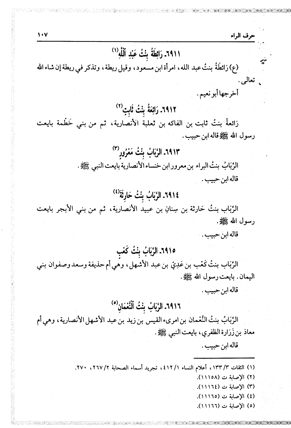 الرباب بنت البراء بن معرور بن خنساء الأنصارية بايعت النبي صَلَّى اللَّهُ عَلَيْهِ وَسَلَّمَ ابن حبيب.