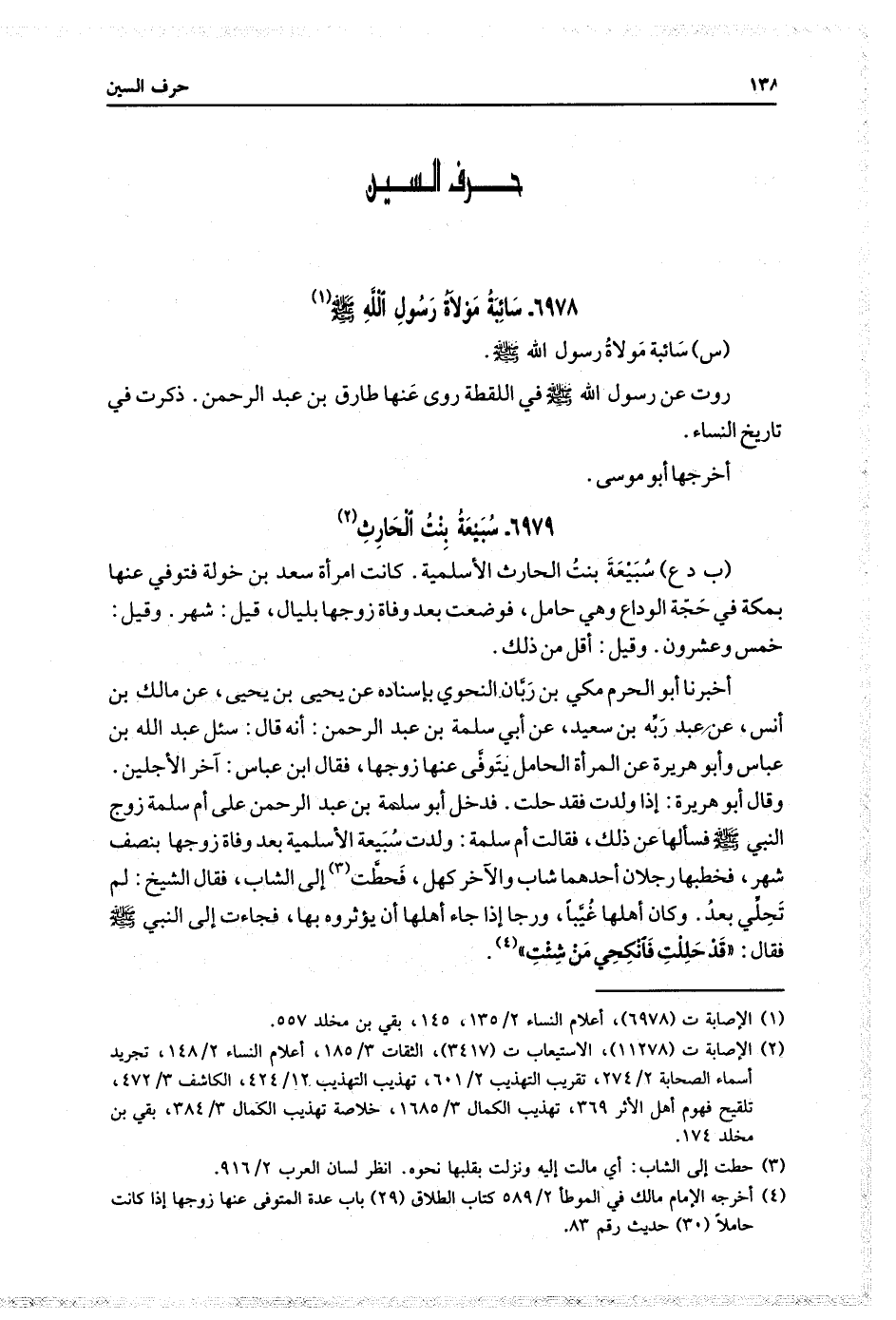 س: سائبة مولاة رسول الله صَلَّى اللَّهُ عَلَيْهِ وَسَلَّمَ روت عن رسول الله صَلَّى اللَّهُ عَلَيْهِ وَسَلَّمَ في اللقطة روى عنها طارق بن عبد الرحمن.