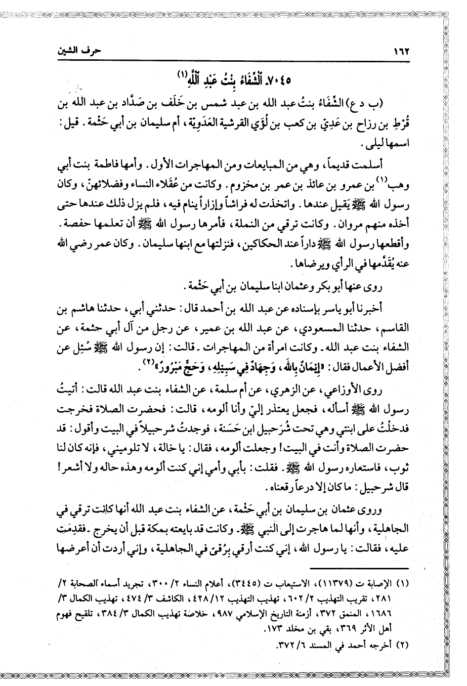ب د ع: الشفاء بنت عبد الله بن عبد شمس بن خلف بن صداد بن عبد الله بن قرط بن رزاح بن عدي بن كعب بن لؤي القرشية العدوية أم سليمان بن أبي خثمة.