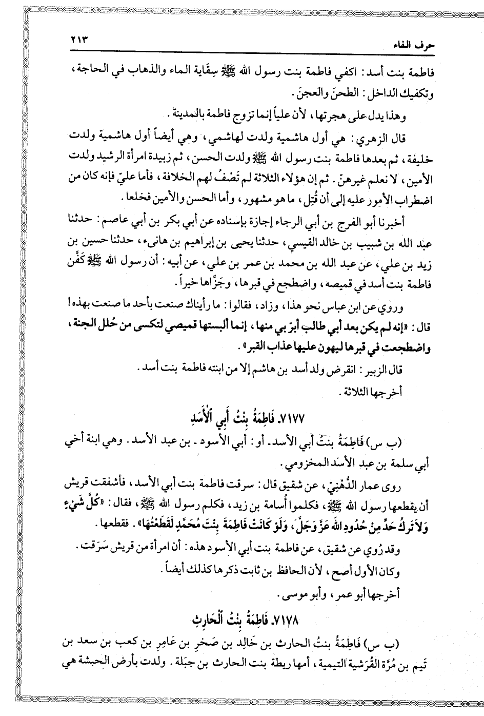 ب س: فاطمة بنت أبي الأسد أو أبي الأسود بن عبد الأسد وهي ابنة أخي أبي سلمة بن عبد الأسد المخزومي.