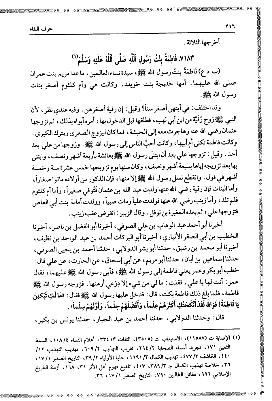٧١٨٣- فاطمة بنت رسول الله صلى الله عليه وسلم