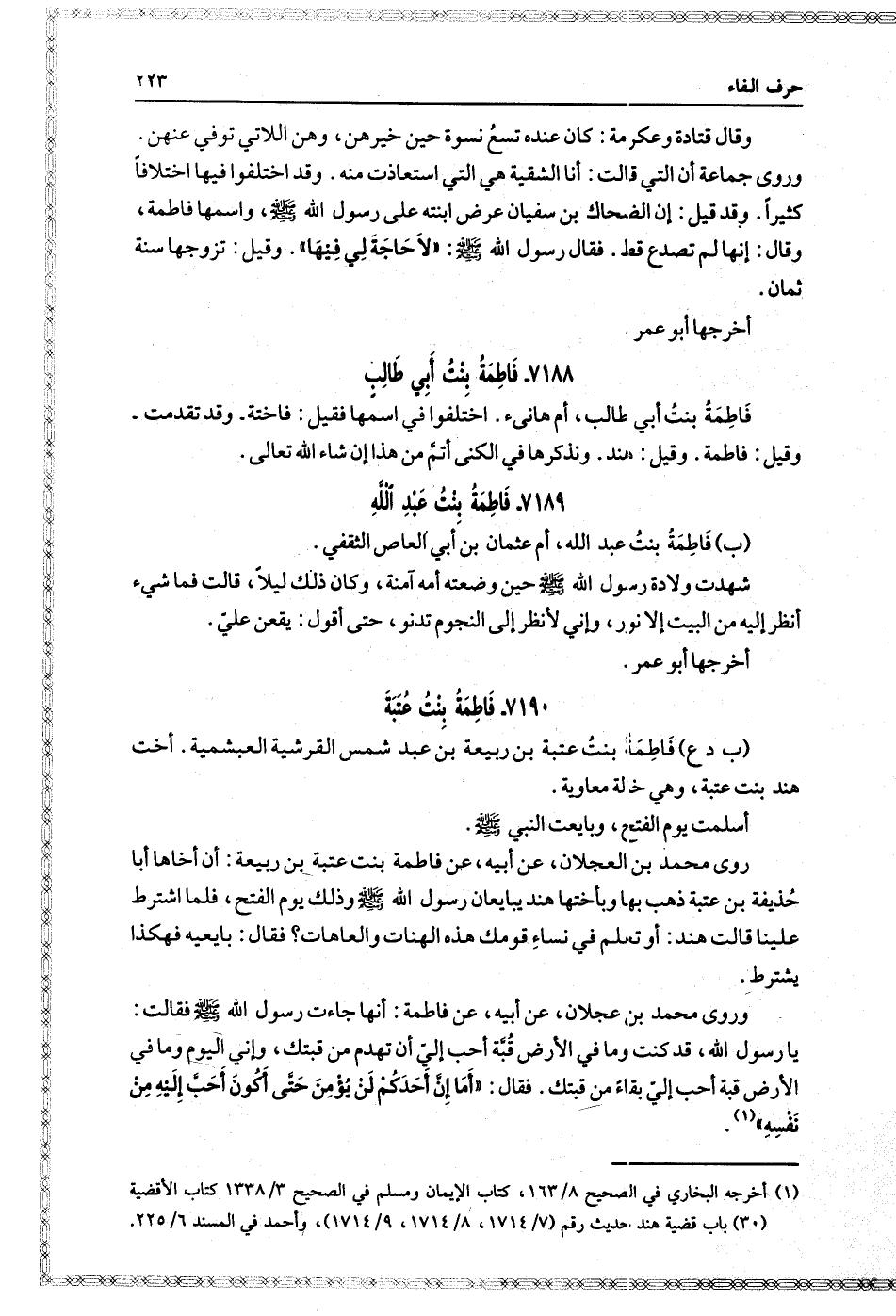 ب د ع: فاطمة بنت عتبة بن ربيعة بن عبد شمس القرشية العبشمية أخت هند بنت عتبة، وهي خالة معاوية.