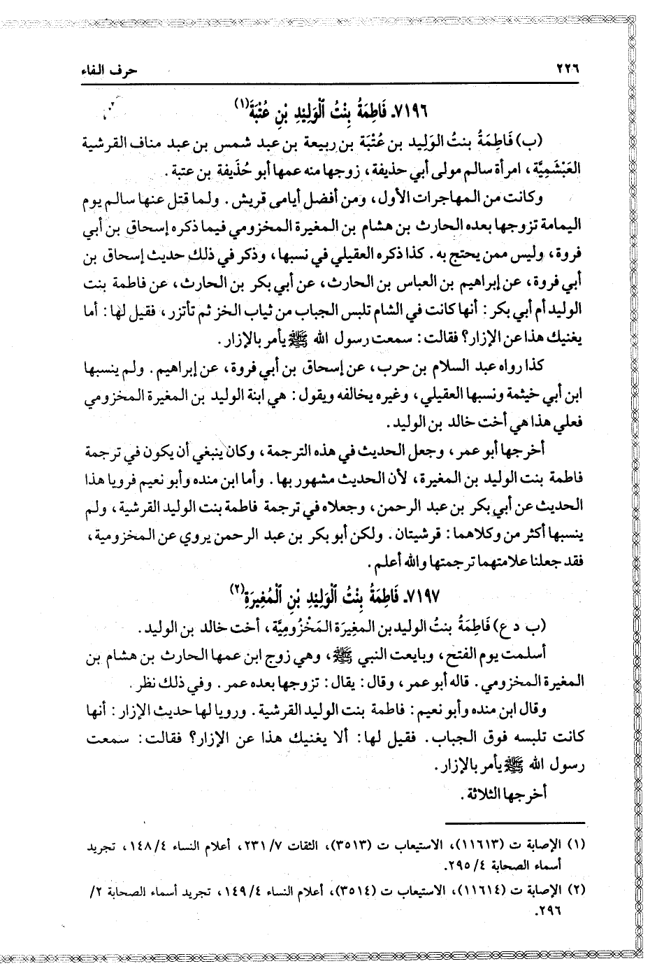 ٧١٩٧- فاطمة بنت الوليد بن المغيرة