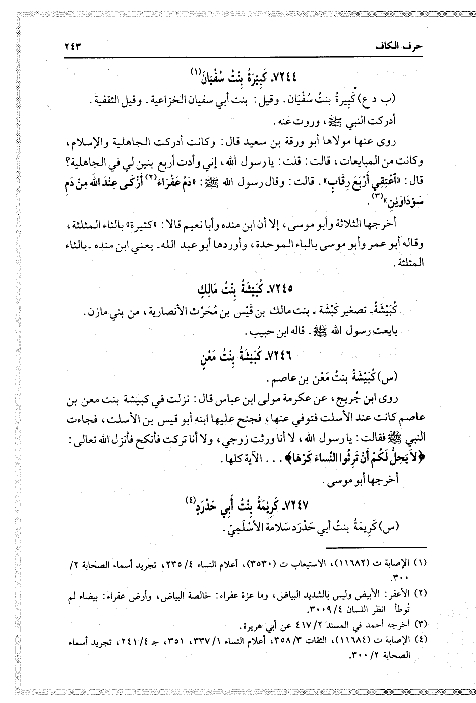 ٧٢٤٤- كبيرة بنت سفيان
