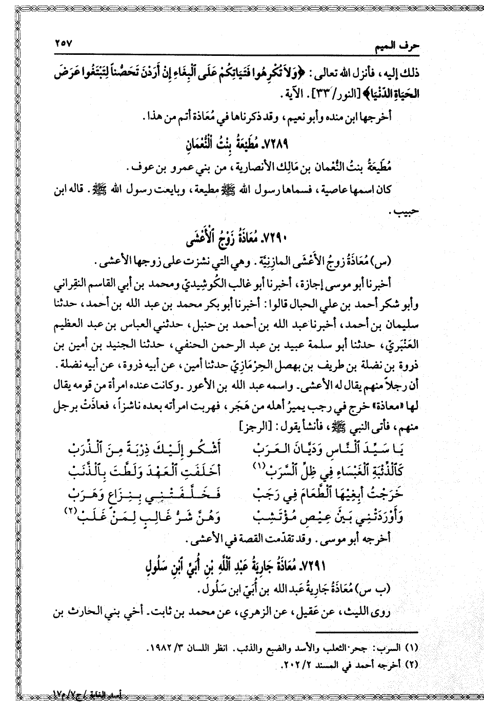 ٧٢٩١- معاذة جارية عبد الله بن أبي ابن سلول