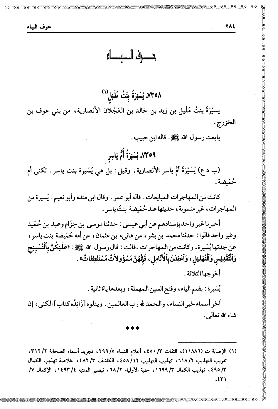 ب د ع: يسيرة أم ياسر الأنصارية وقيل: بل هي يسيرة بنت ياسر.