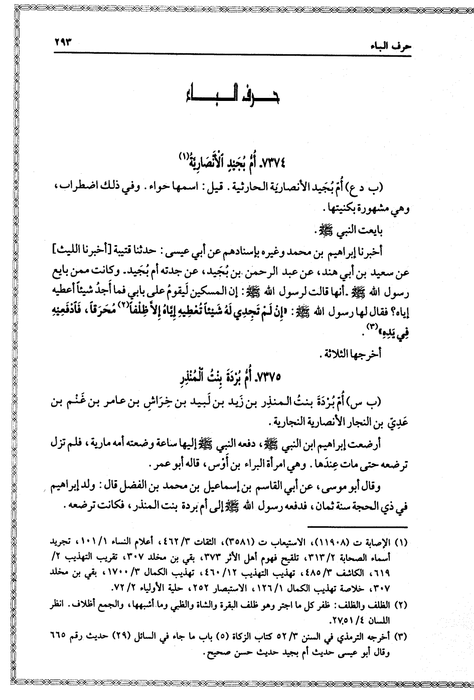 ب د ع: أم بجيد الأنصارية الحارثية قيل اسمها حواء وفي ذلك اضطراب، وهي مشهورة بكنيتها.