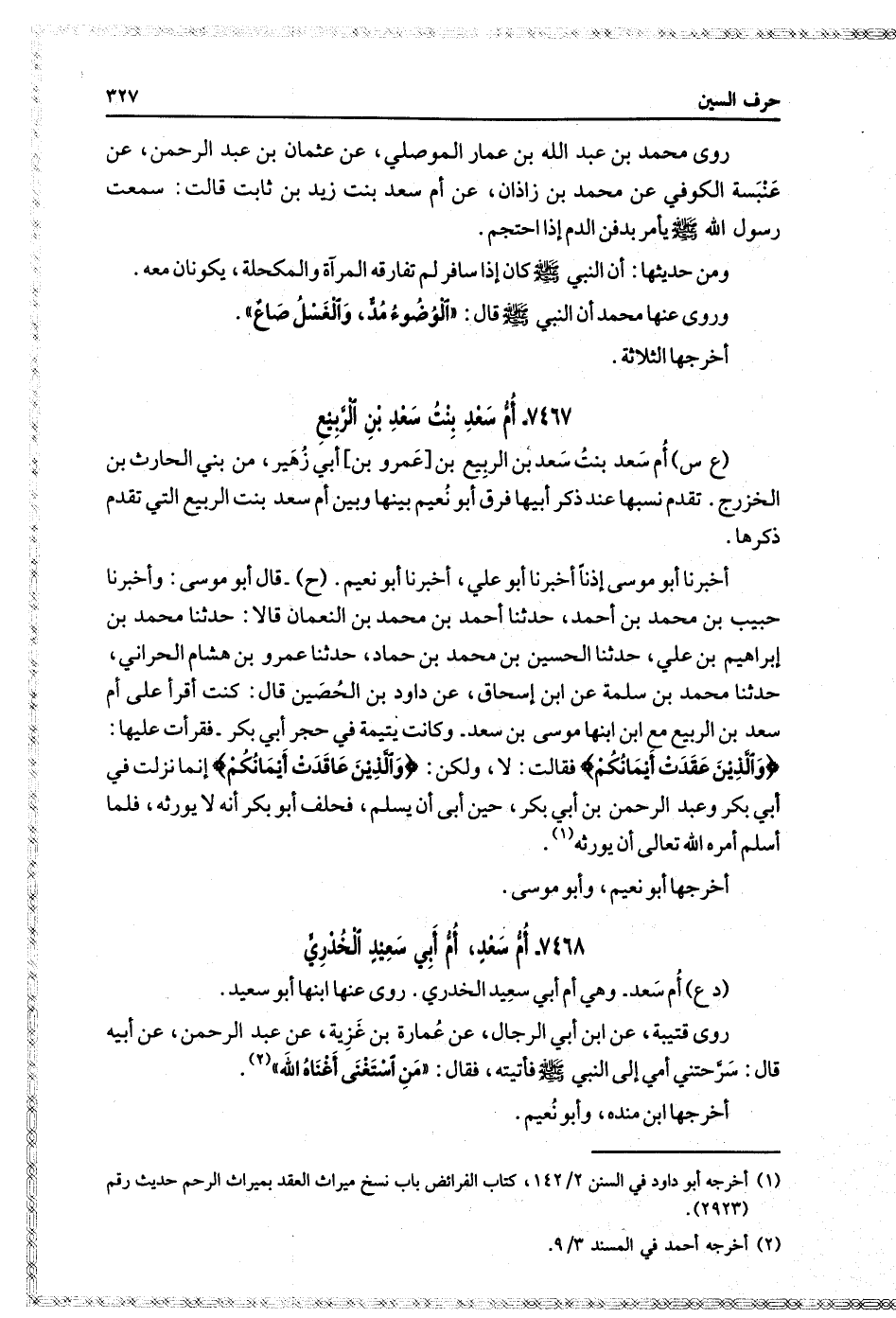 ٧٤٦٨- أم سعد، أم أبي سعيد الخدري