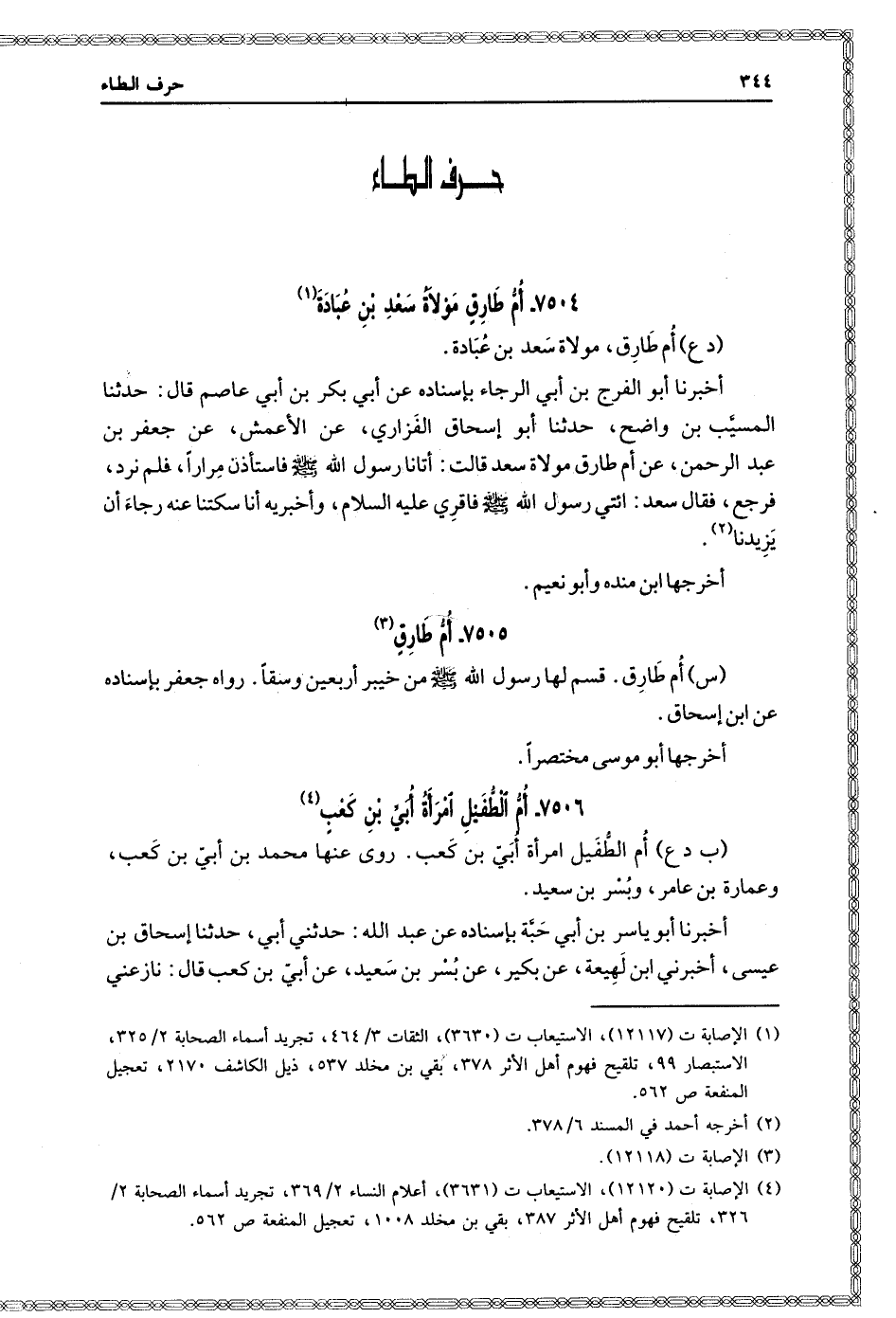 ٧٥٠٤- أم طارق مولاة سعد بن عبادة