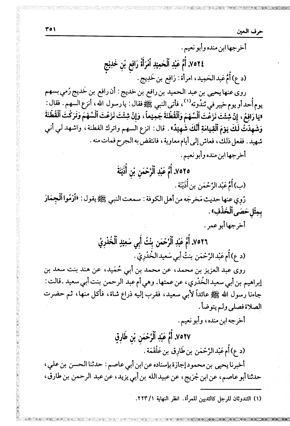٧٥٢٤- أم عبد الحميد امرأة رافع بن خديج