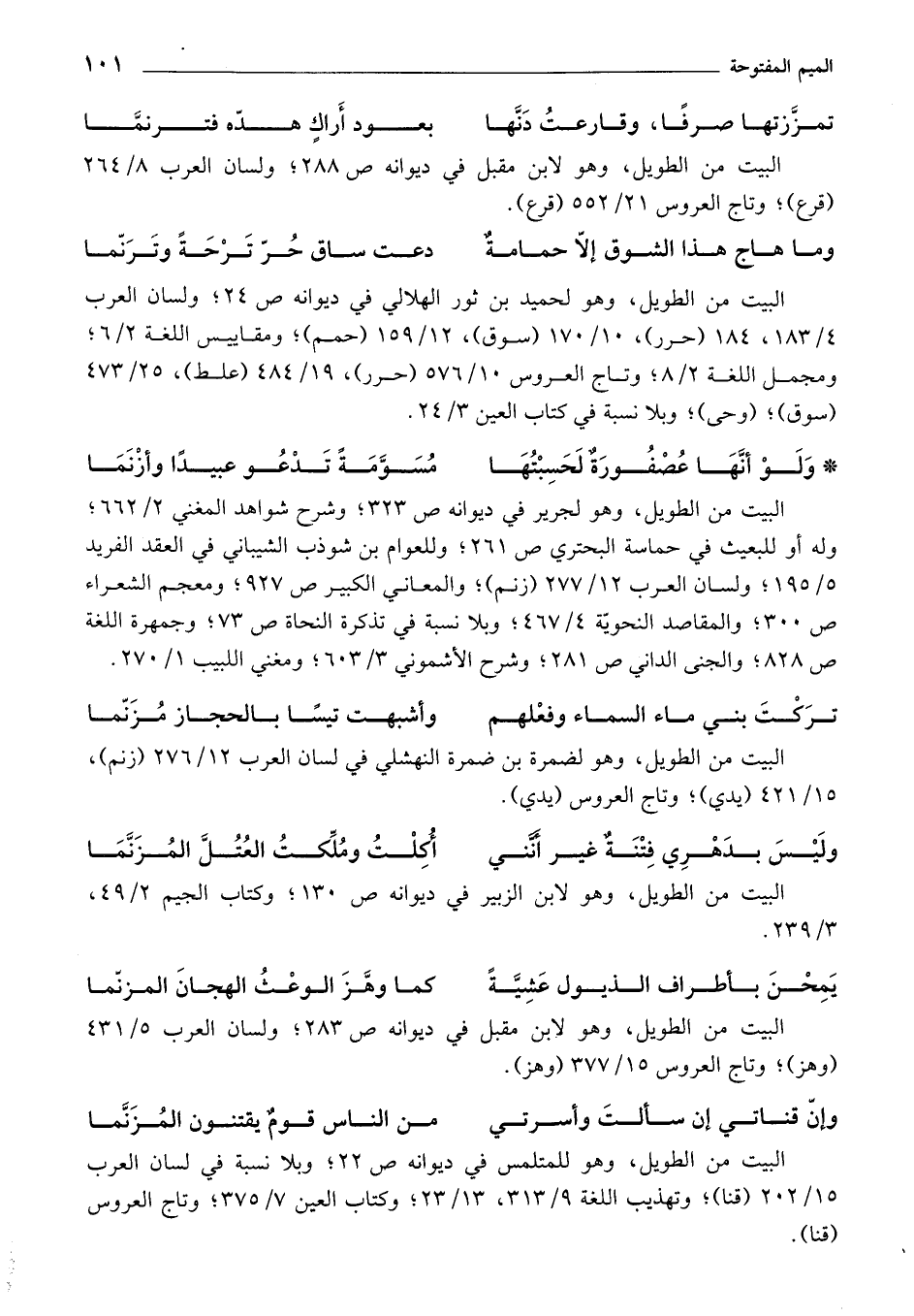 وإنّ قناتي إن سألتَ وأسرتي من الناس قومٌ يقتنون المٌزَنَّما