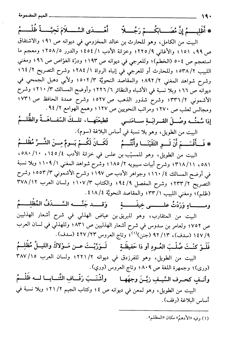 البيت من الطويل، وهو للمسيب بن علس في خزانة الأدب 4/ 145، 10/ 580، 581، 11/ 318؛ وشرح أبيات سيبويه 2/ 185؛ وشرح شواهد المغني 1/ 109؛ وبلا نسبة في أوضح المسالك 4/ 160؛ وجواهر الأدب ص 197؛ وشرح الأشموني 3/ 553؛ وشرح التصريح 2/ 233؛ وشرح المفصل 9/ 94: والكتاب 3/ 107؛ ولسان العرب 12/ 378 (ظلم)؛ ومغني اللبيب 1/ 33؛ والمقاصد النحوية 4/ 418.
