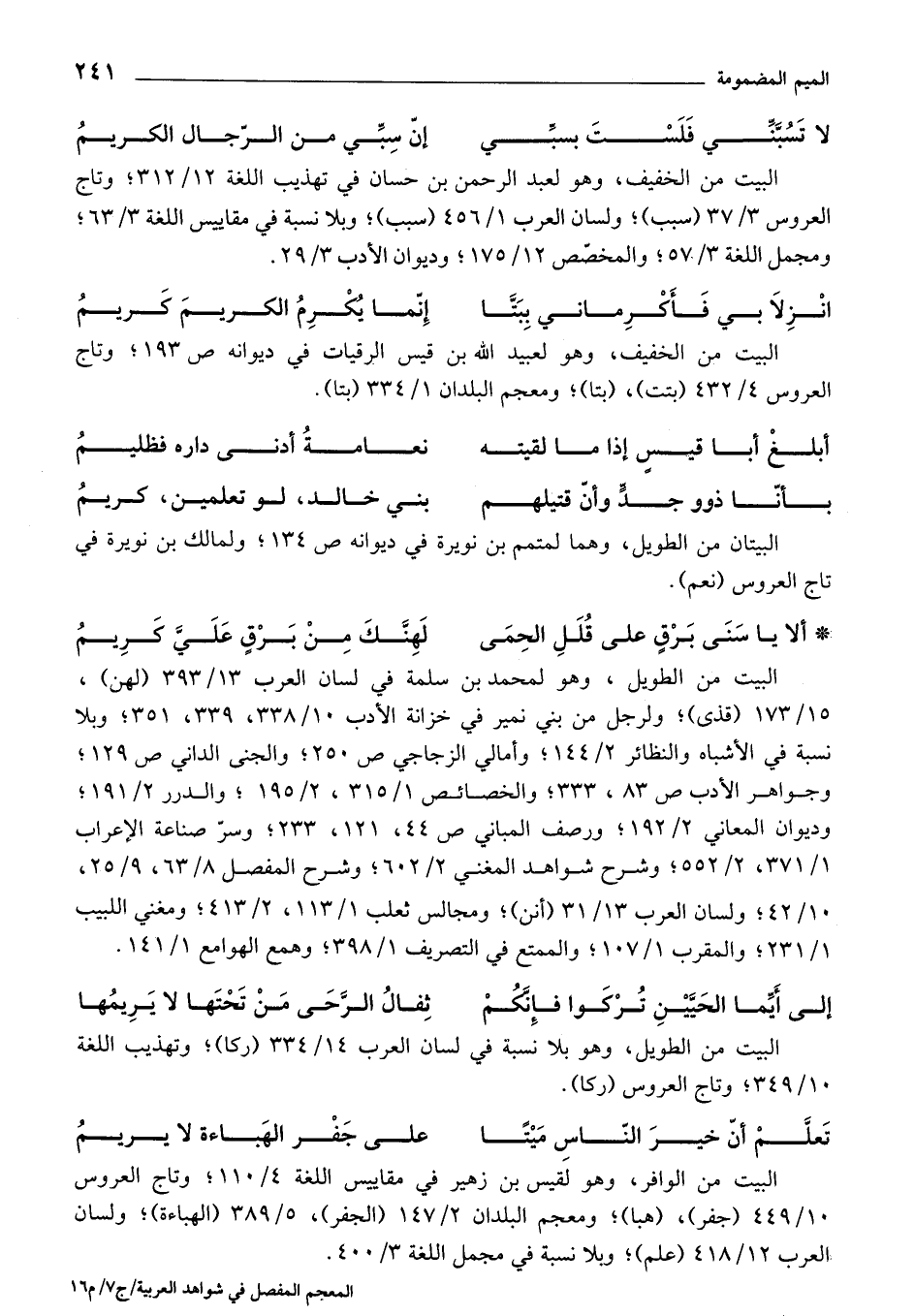 كتاب المعجم المفصل في شواهد العربية (اسم الجزء: 7)