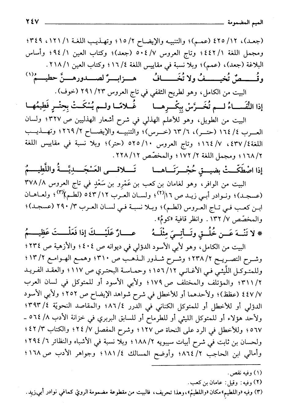 (¬3) وفيه ((واللطيم) مكان ((واللطيم)) وهذا تحريف، فالبيت من مقطوعة مضمومة الروي كما في نوادر أبي زيد.