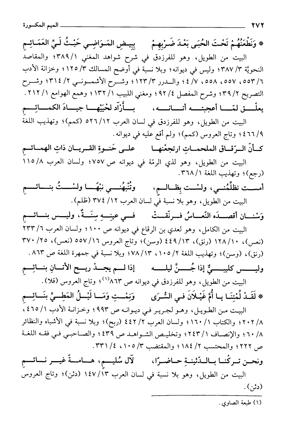 كتاب المعجم المفصل في شواهد العربية (اسم الجزء: 7)