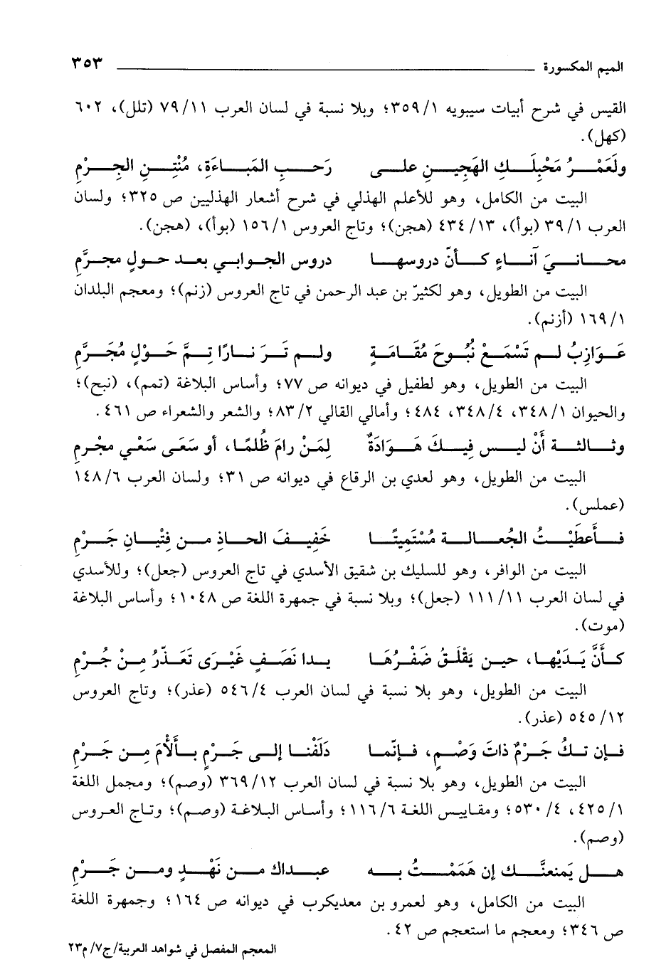 كتاب المعجم المفصل في شواهد العربية (اسم الجزء: 7)