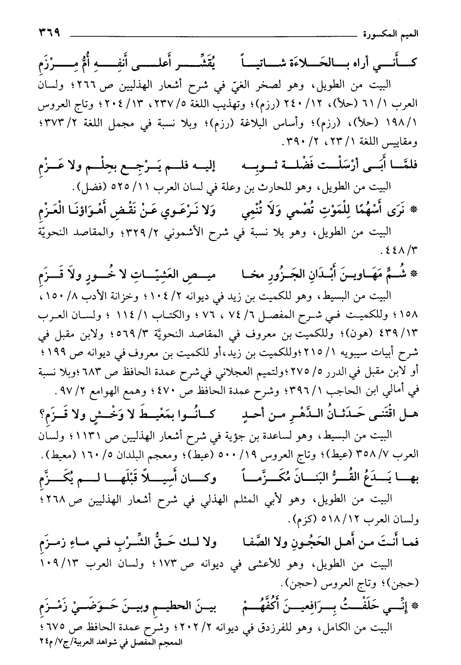 كتاب المعجم المفصل في شواهد العربية (اسم الجزء: 7)