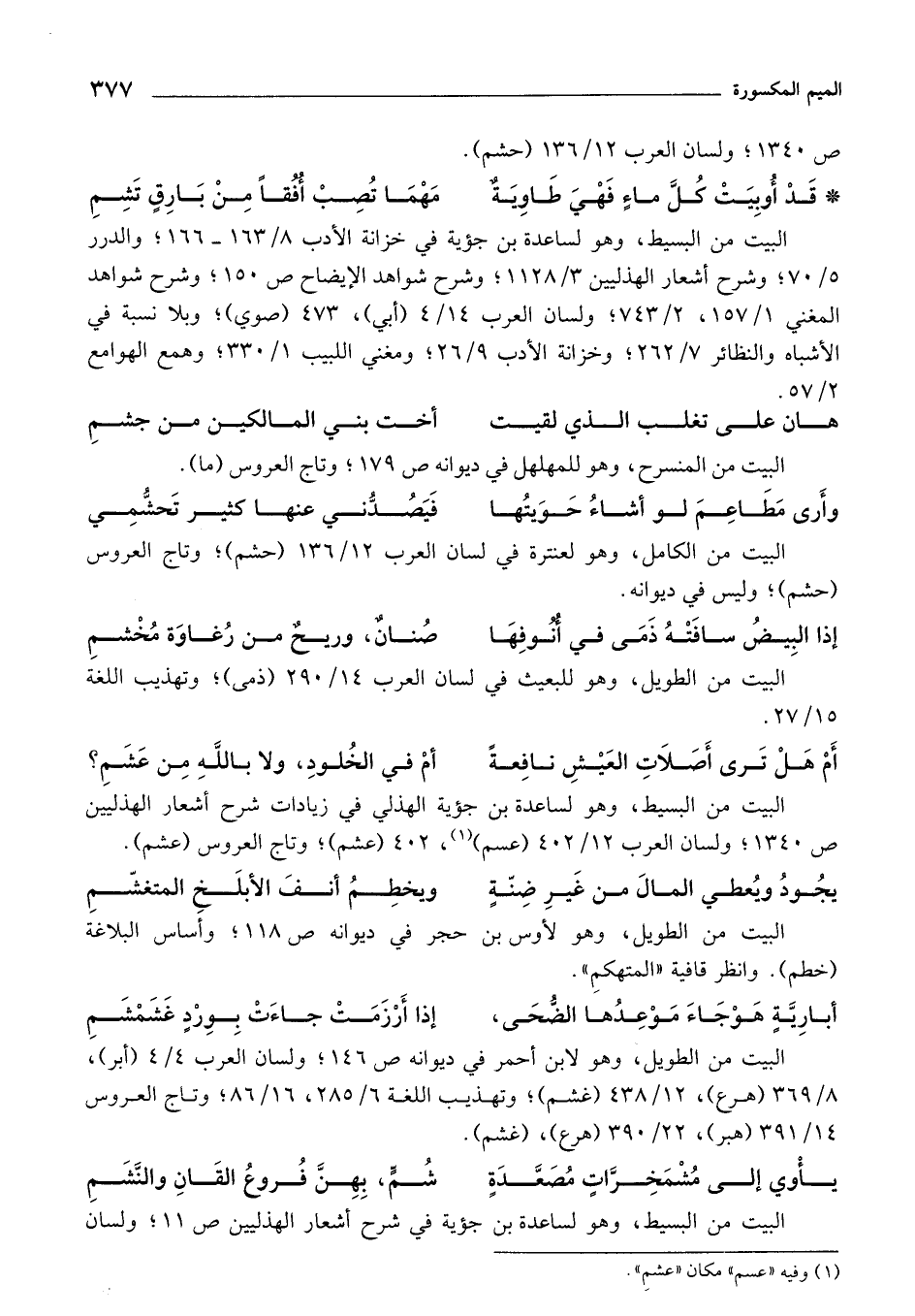 البيت من البسيط، وهو لساعدة بن جؤية الهذلي في زيادات شرح أشعار الهذليين ص 1340؛ ولسان العرب 12/ 402 (عسم) (¬1)، 402 (عشم)؛ وتاج العروس (عشم).