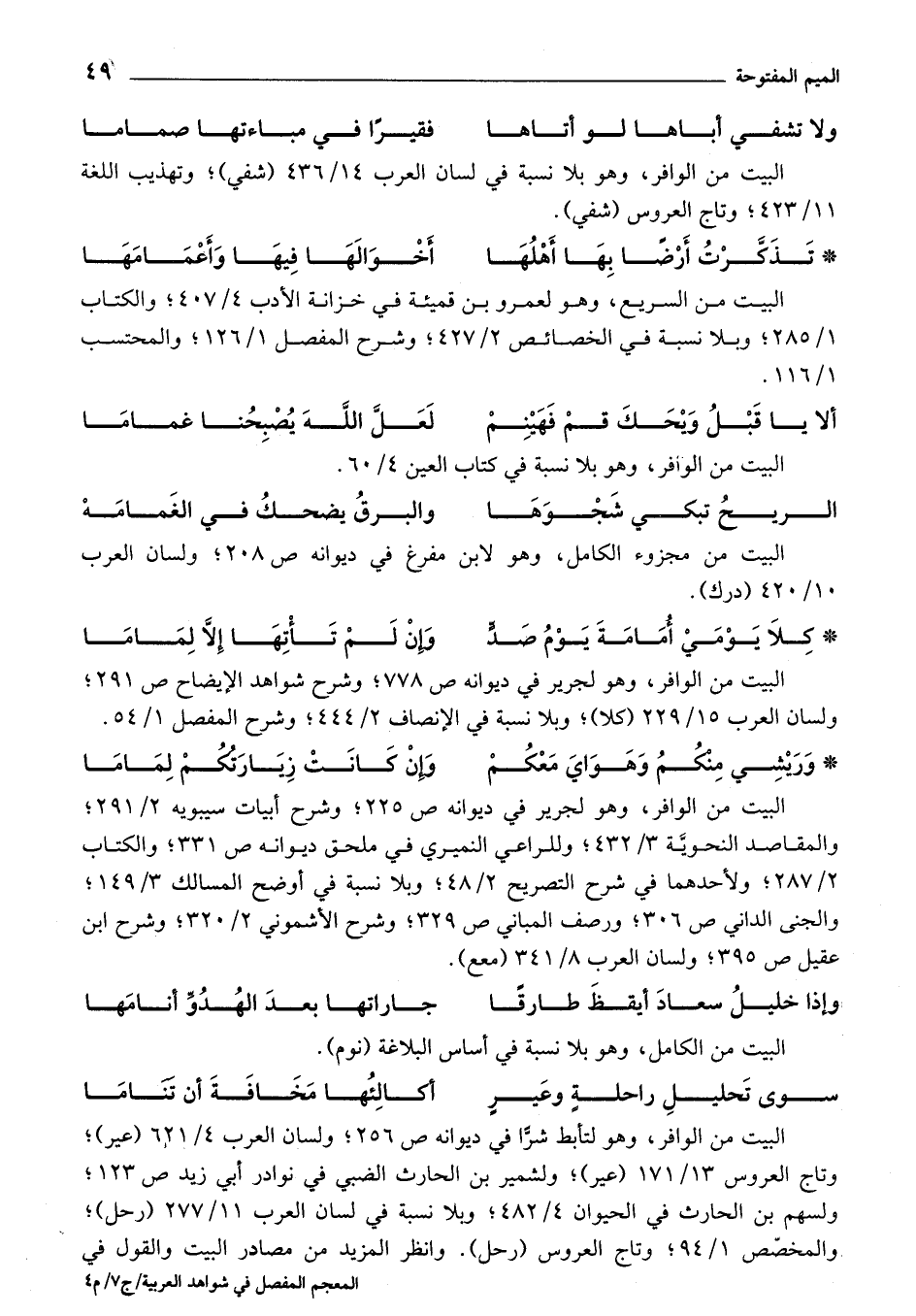 كتاب المعجم المفصل في شواهد العربية (اسم الجزء: 7)